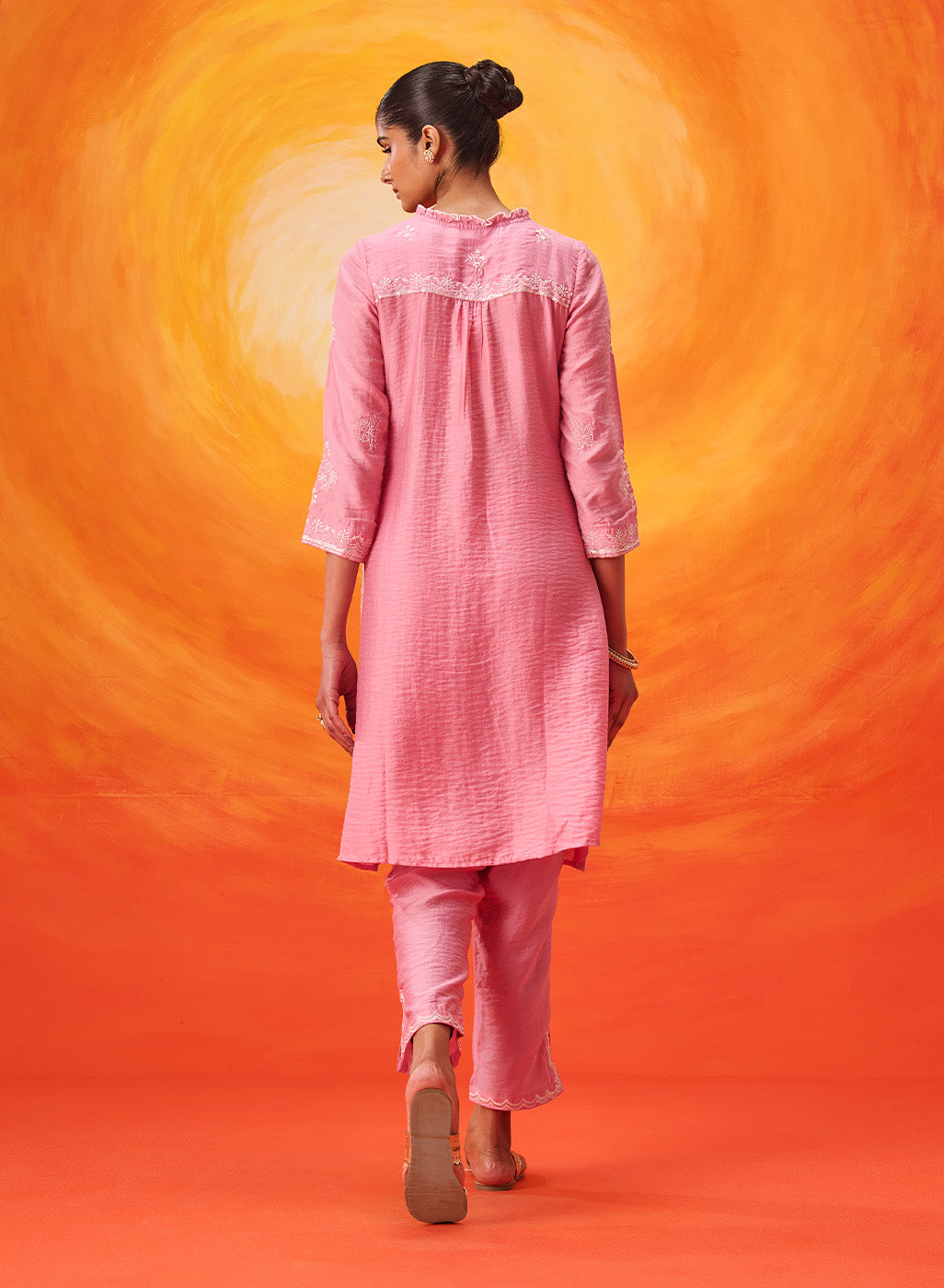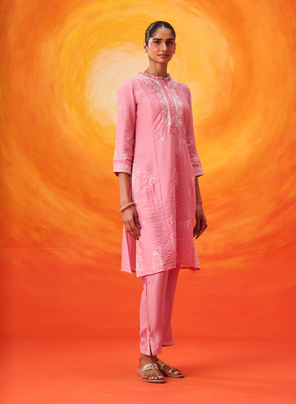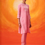 This pink kurta set is all about understated charm. Gentle embroidery, a hint of sparkle, and an easy silhouette come together to create a look that’s feminine, relaxed, and perfect for summer celebrations.