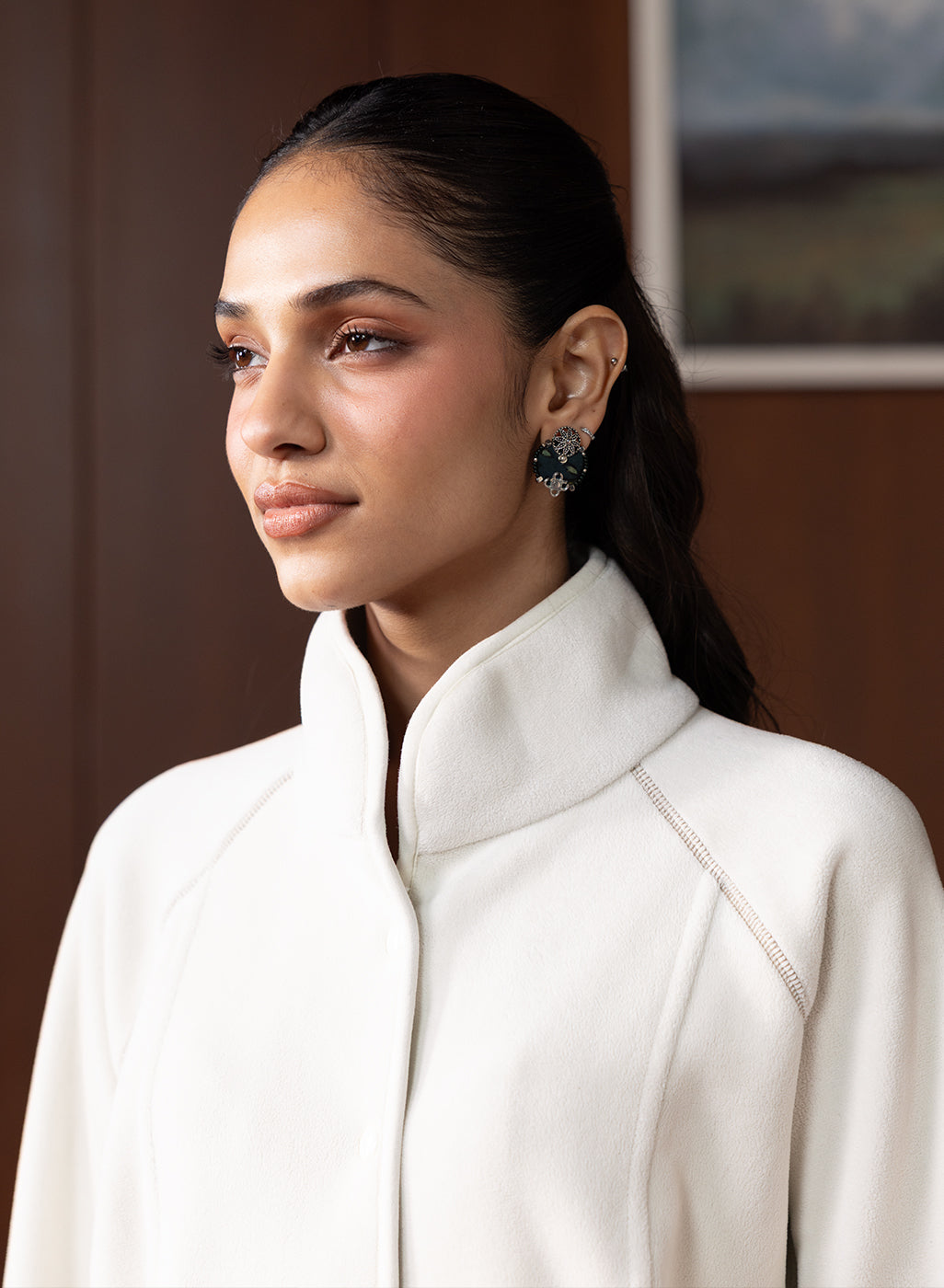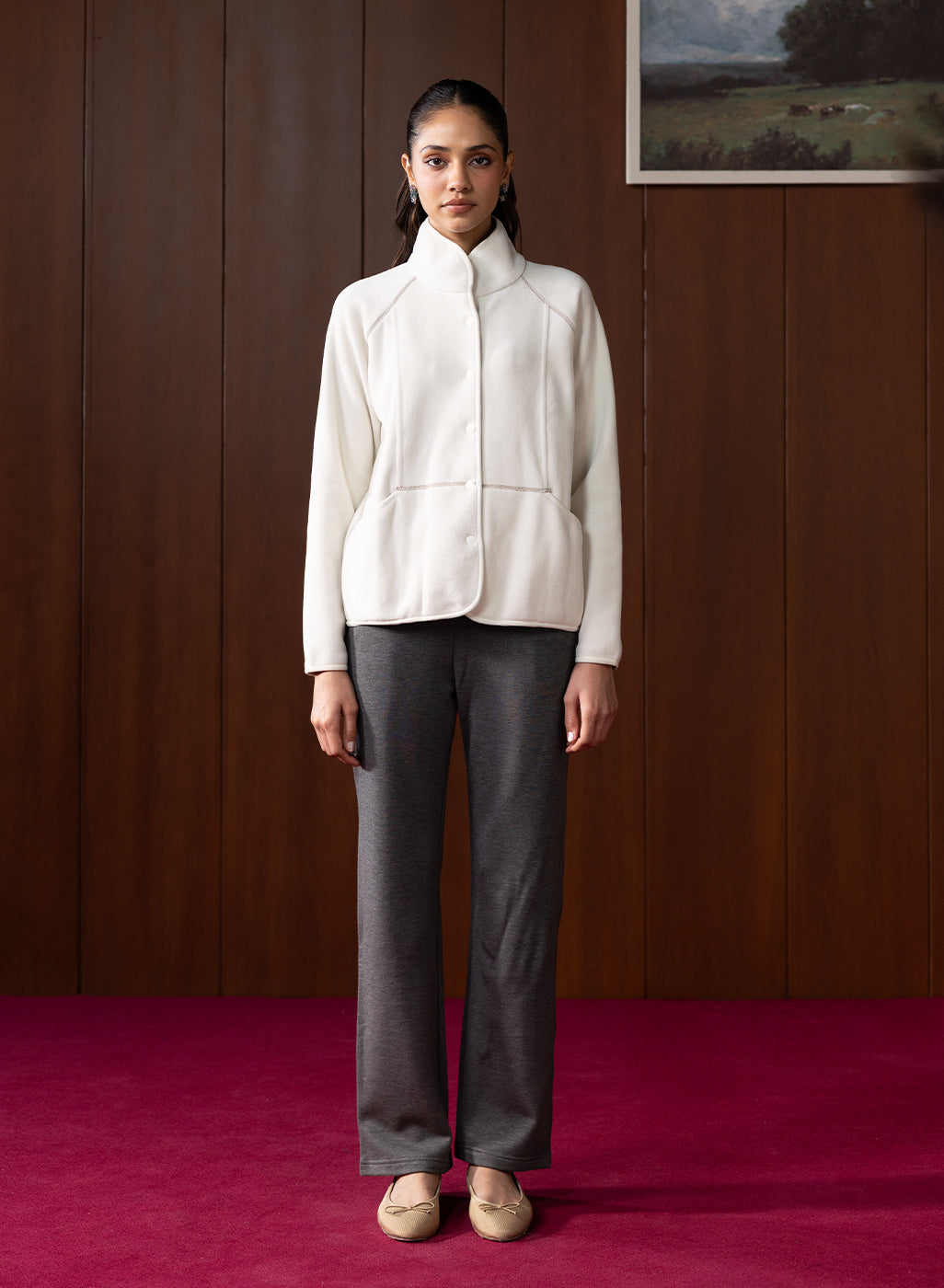 This grey collared jacket brings together warmth and structure for everyday wear. A versatile piece that transitions seamlessly from morning errands to evening strolls.