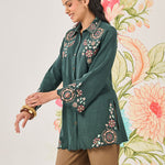 Aria Green Embroidered Collared Shirt