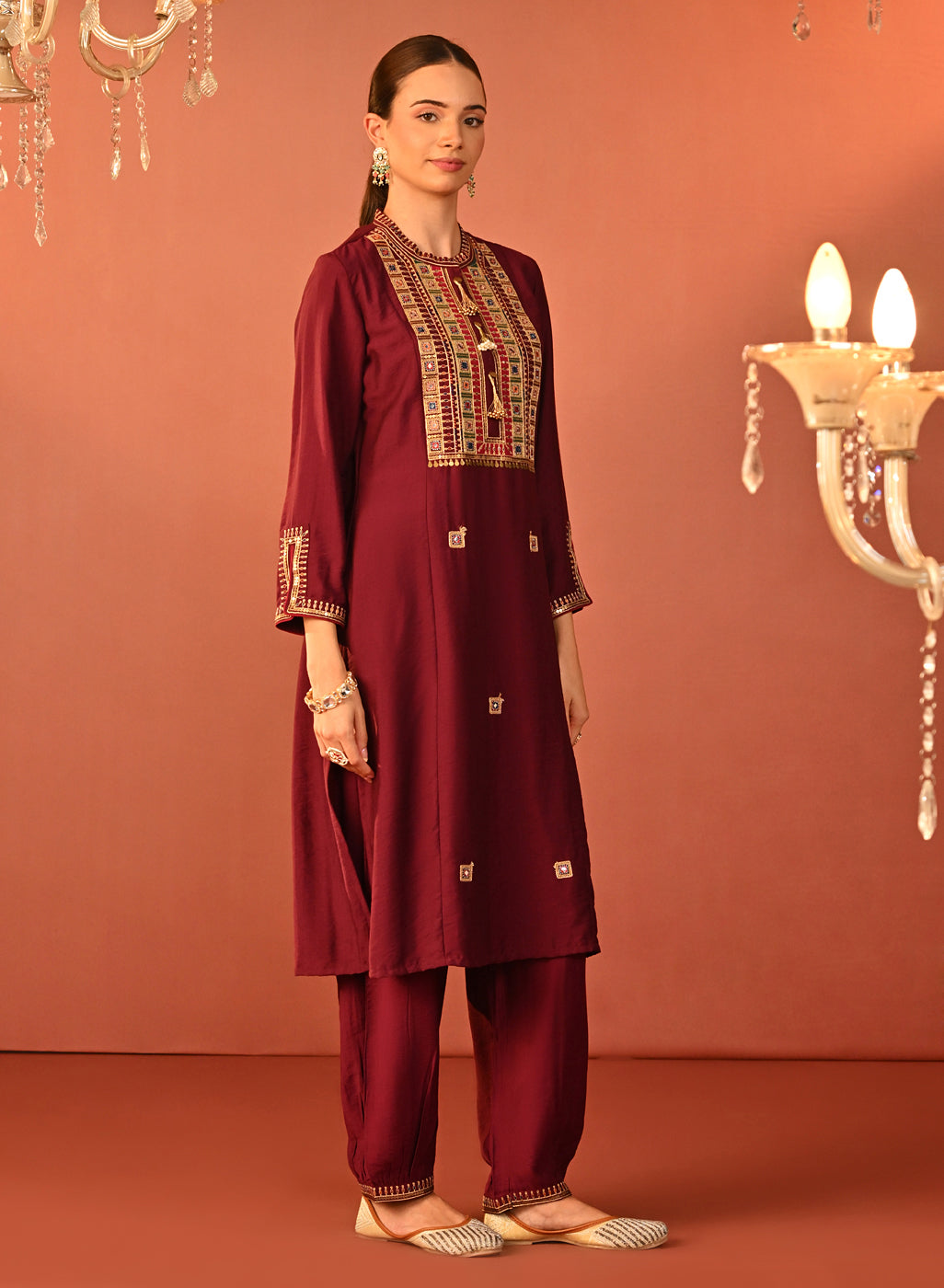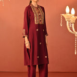 Arshia Chrome Wine Embroidered Rayon Co-ord Set