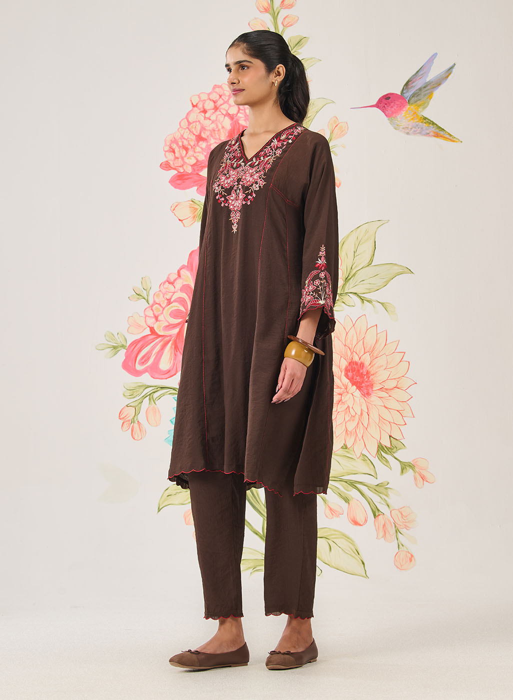 Simple, comfortable and versatile, this brown kurta set is made for effortless everyday dressing. The rich tone is balanced with light embroidery and textured details, making it easy to carry from morning to evening.