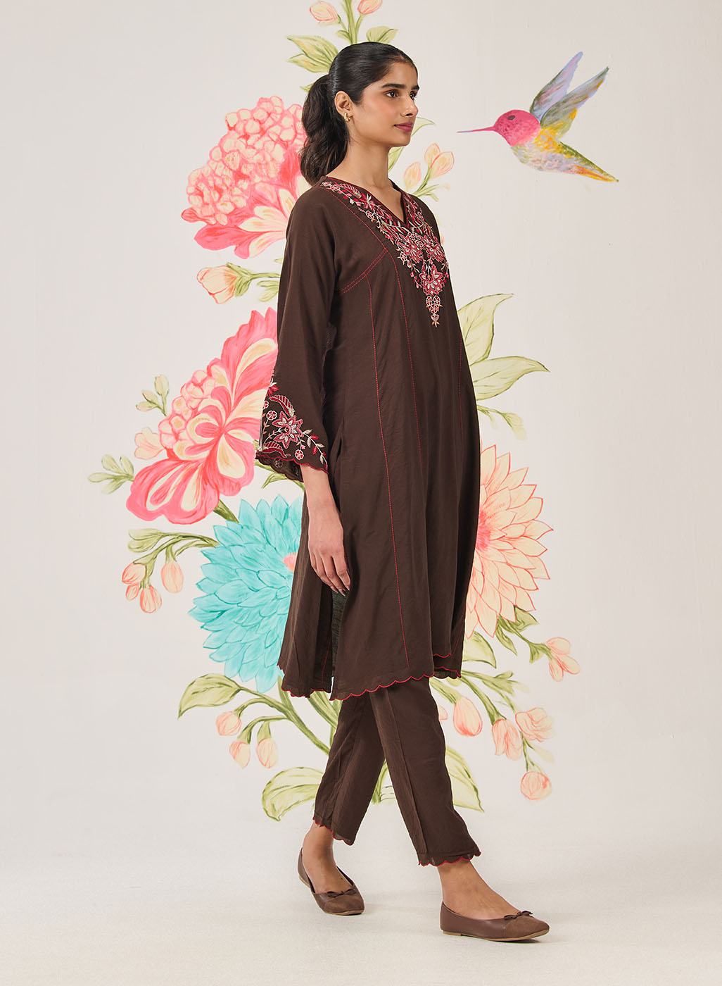 • Scalloped detailing along the neckline, sleeves and kurta hem.