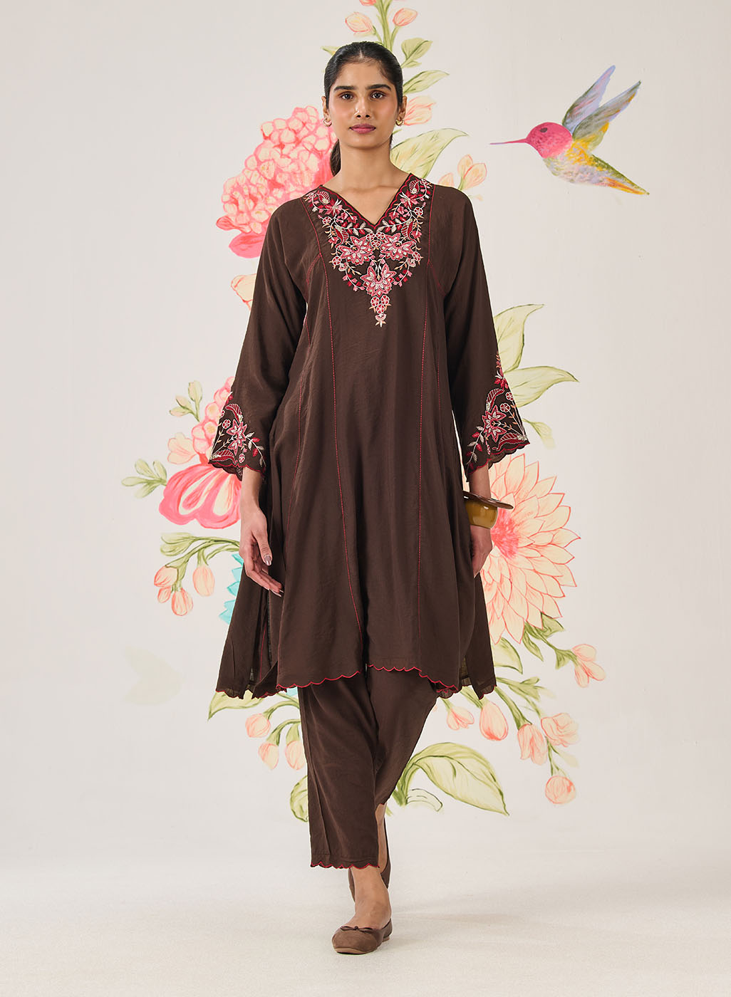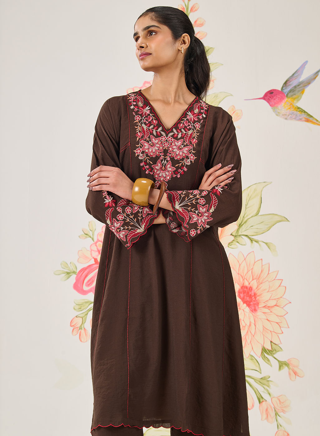 Avirya Brown Embroidered Kurta Set