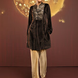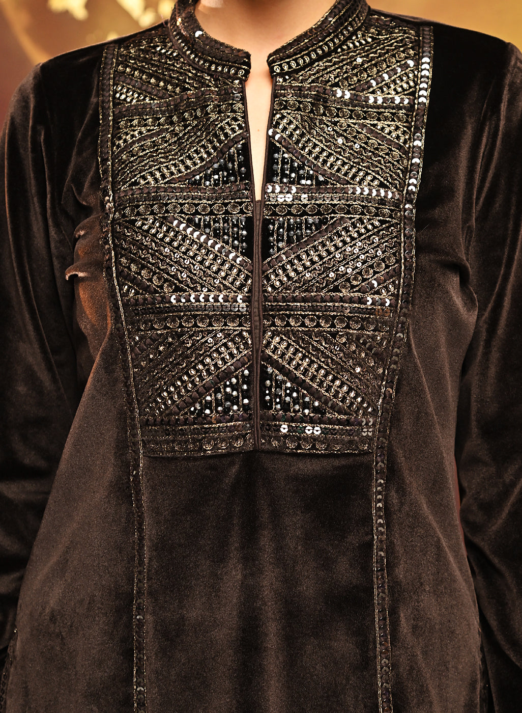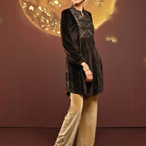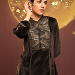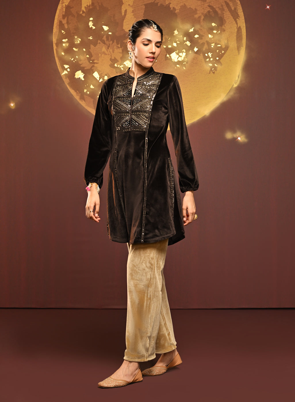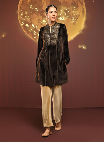 Azra Coffee Brown Embroidered Velvet Kurti for Women