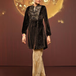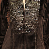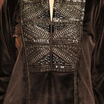 Detailed work on neckline of Azra Coffee Brown Embroidered Velvet Kurti for Women