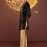 •The straight silhouette drapes effortlessly, ensuring a relaxed and elegant fit, while the mandarin collar brings a regal touch.