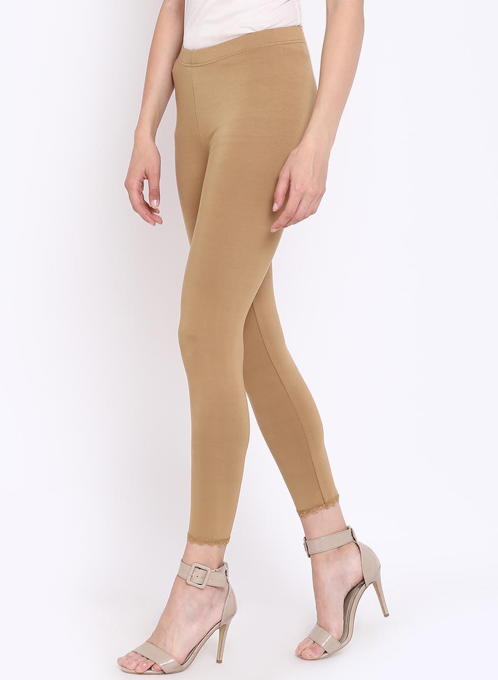 Farah Dark Beige Viscose Lycra Leggings for Women