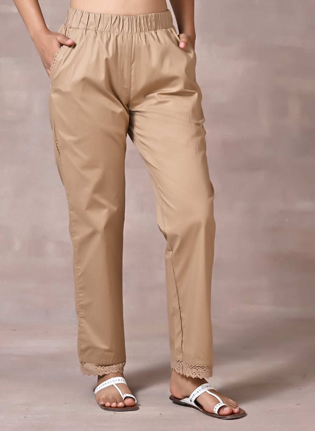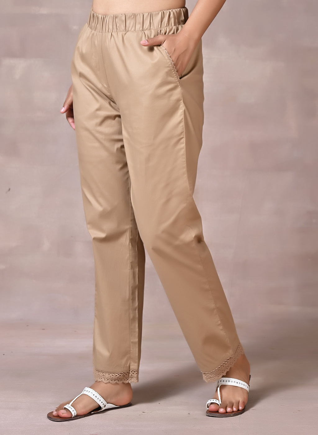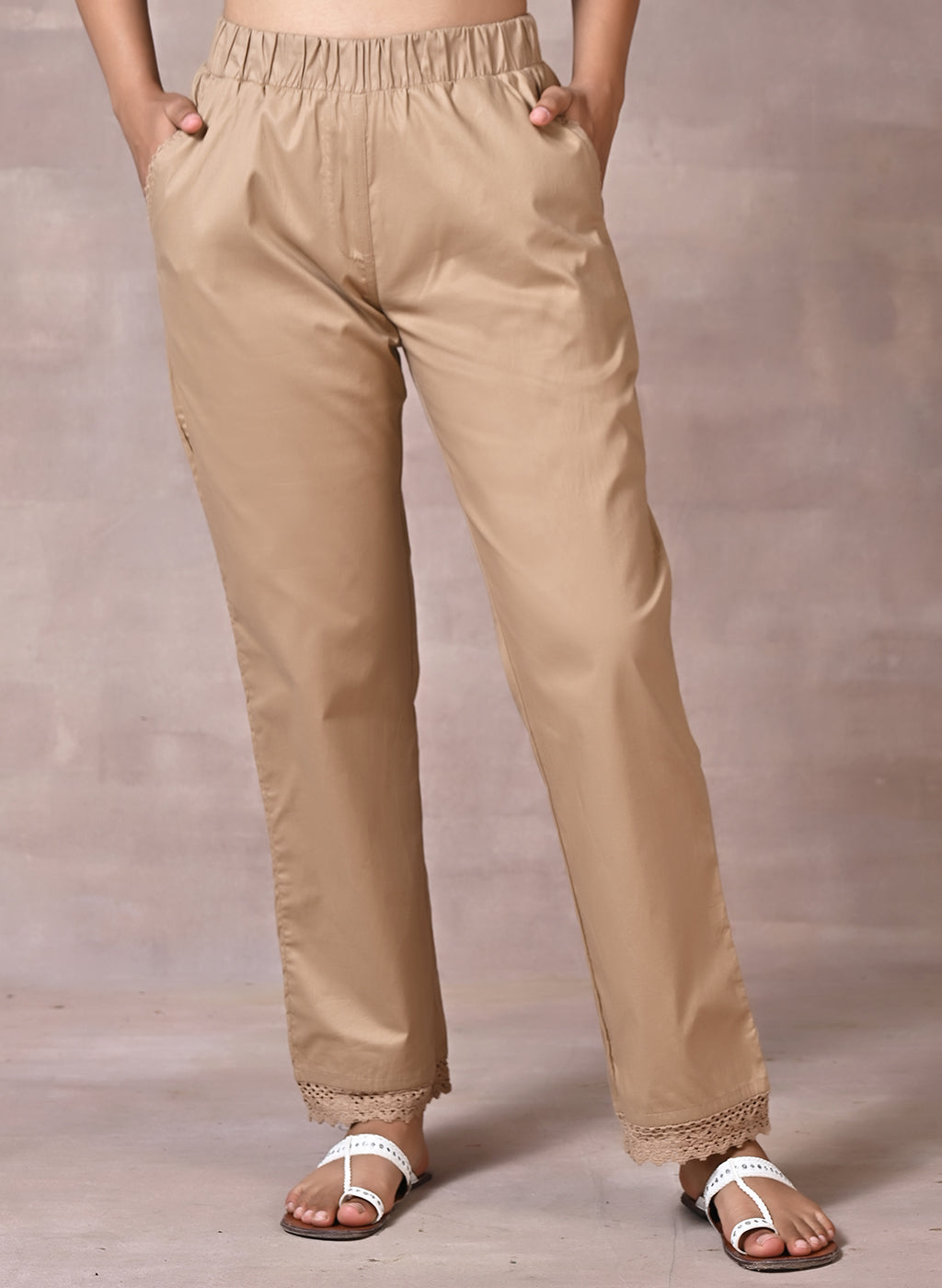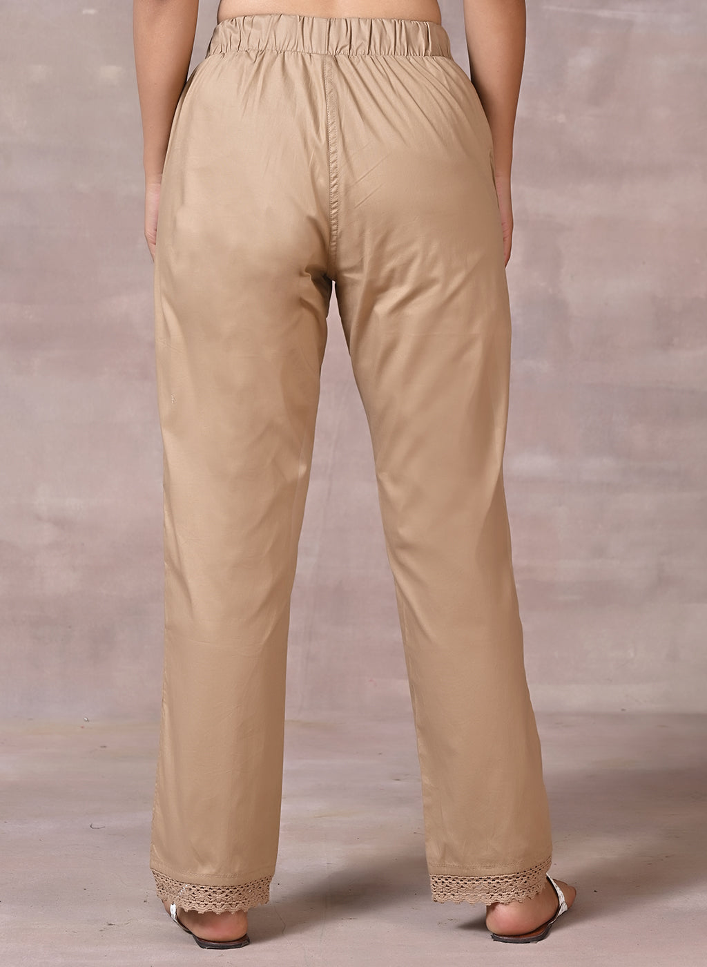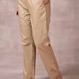 Shazia Beige Cotton Relaxed Fit Pants for Women