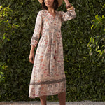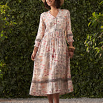 Bella Light Grey Printed Muslin Dress for Women