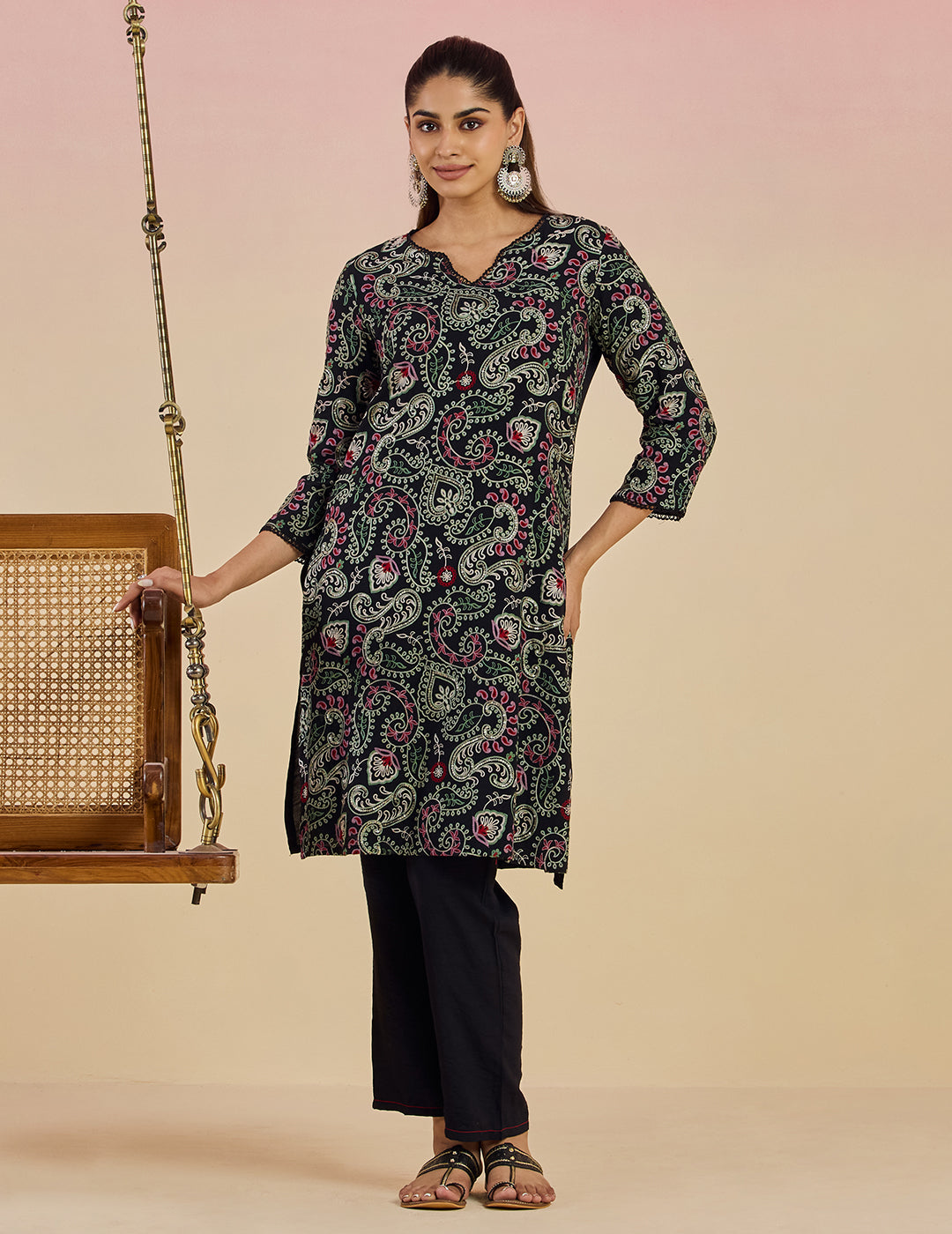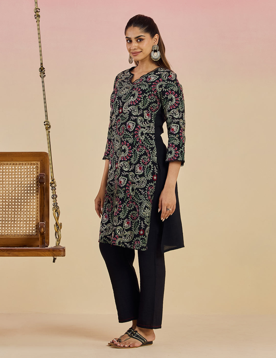 Karwan Fully Embroidered Midnight Black Straight long Kurta Set