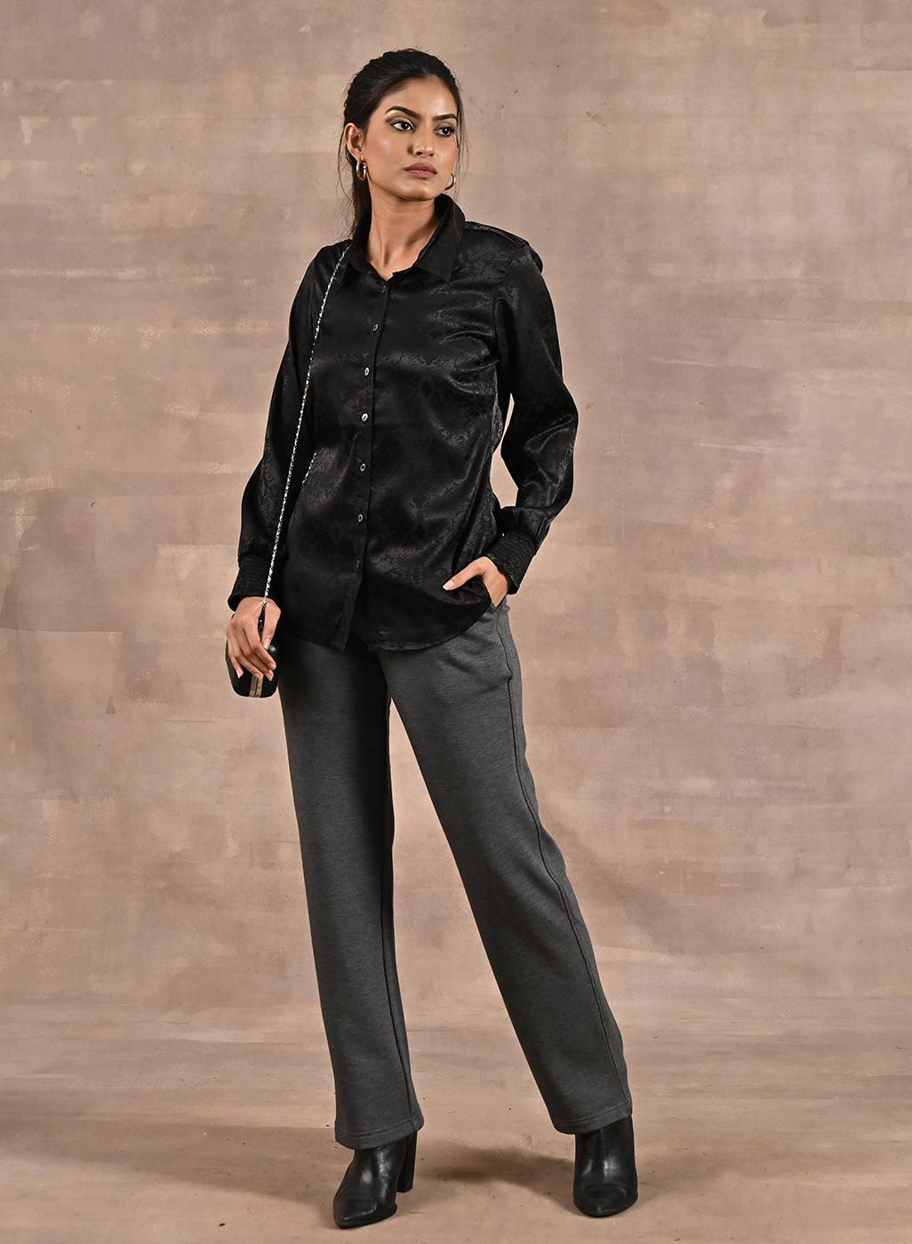 Satin shirts are back in style and this time they are here to stay! This satin shirt with an all-over paisley print and a round hem showcases a smocking cuff and gathered sleeves. Add it to your collection right now to achieve that classy look suitable for all occasions- be it cafe hopping with your pals or meetings at work.