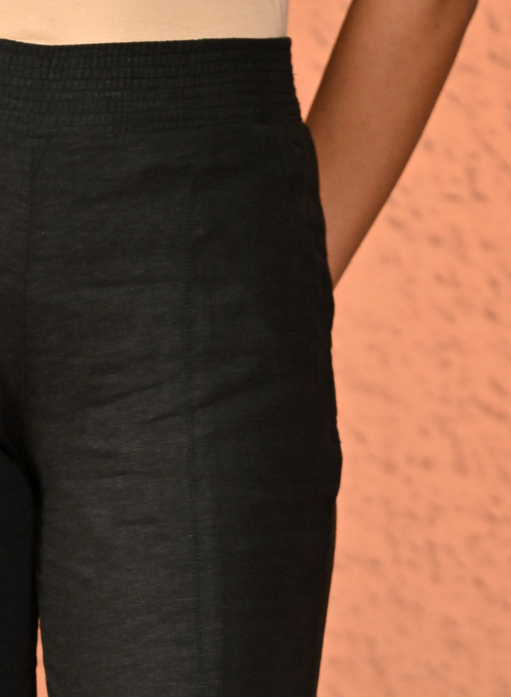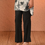 Akiya Black Cotton Linen Relaxed Fit Pants for Women