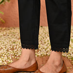Our Shazia Black Cotton Relaxed Fit Pants for Women are designed for ultimate comfort and style. Crafted from breathable fabric with a touch of stretch, these pants provide a relaxed fit that ensures ease of movement throughout the day.