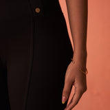 •Featuring unique button detailing, they add a stylish accent to the classic black design.