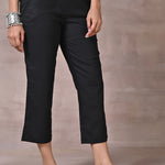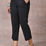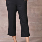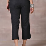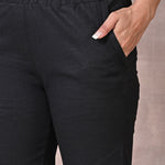 Falak Black Cotton Linen Relaxed Fit Pants for Women