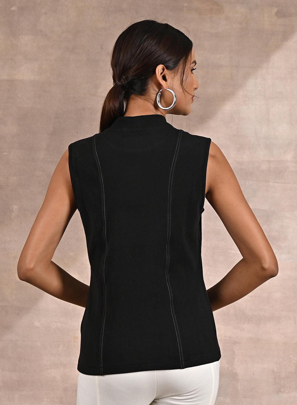 Black Sleeveless Winter Top with Fine Stich Detailing - Lakshita