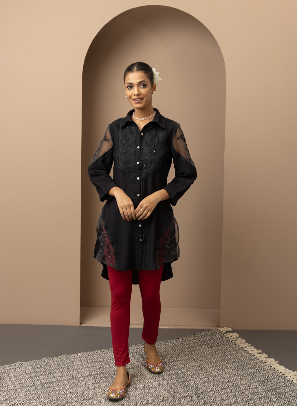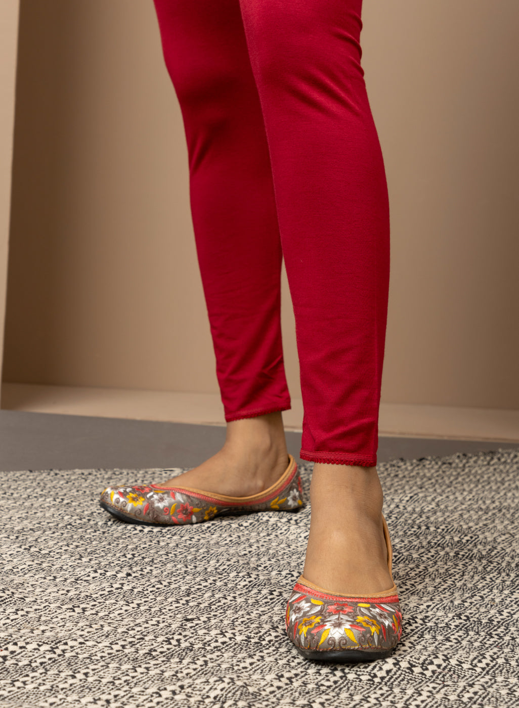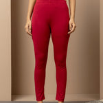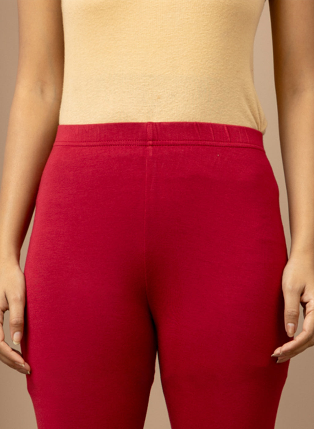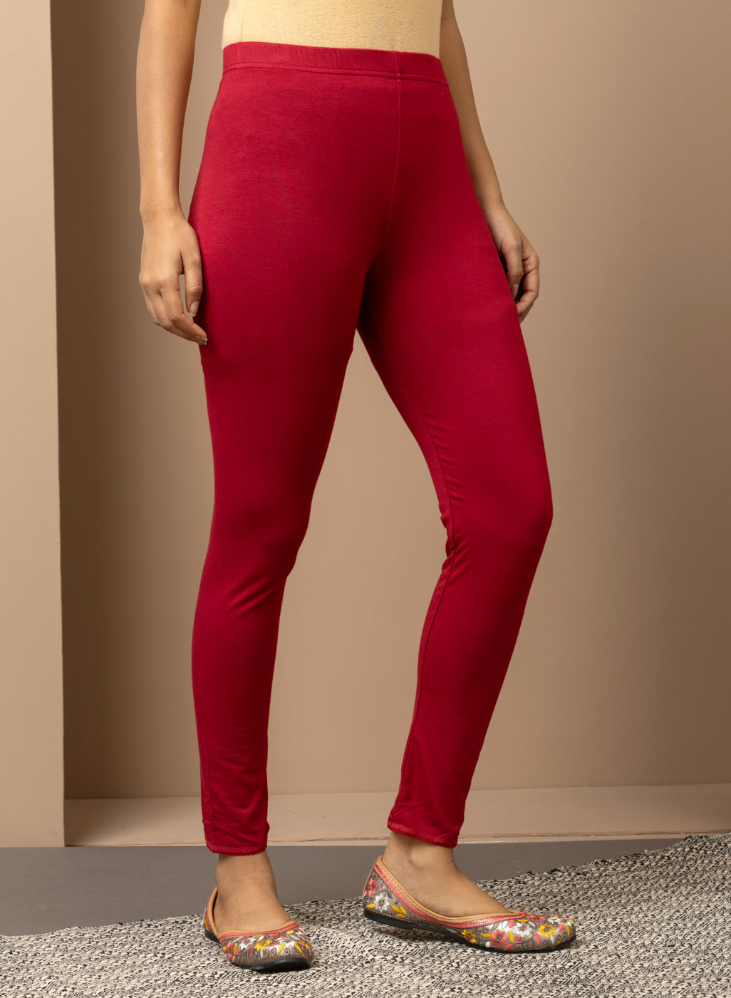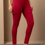 Our Farah Blood Red Viscose Lycra Leggings for Women offer a chic and comfortable addition to any wardrobe. Crafted from soft, breathable, and lightweight fabric with a slight stretch, these leggings provide a flattering fit that moves with you throughout the day.