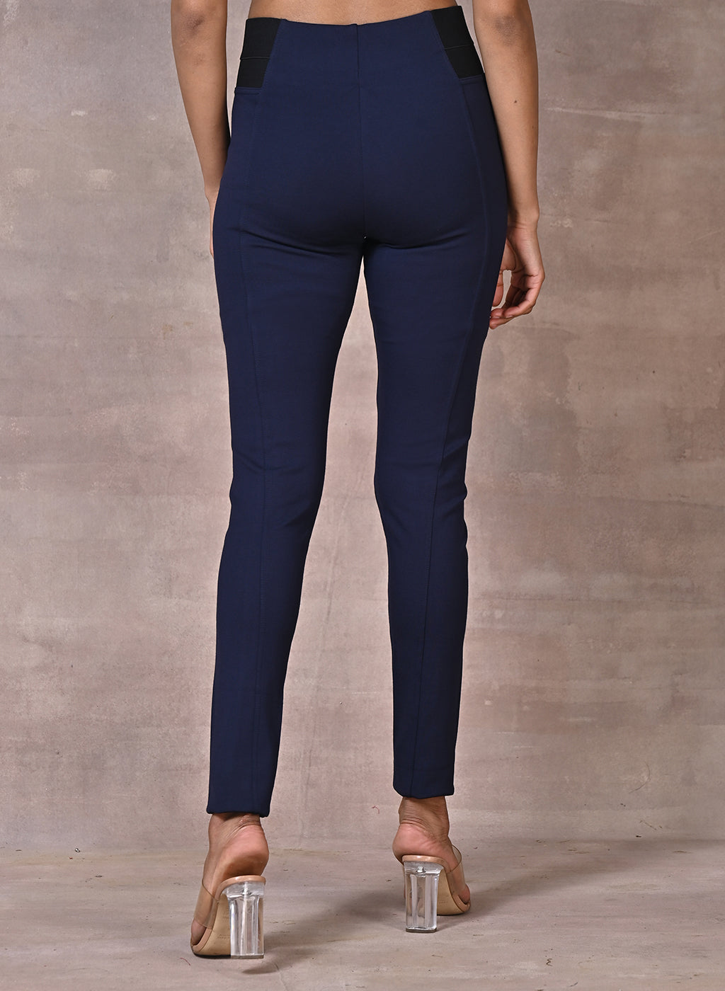 You can never go wrong with olive green jeggings for basically any occasion. The stretchable fabric makes them a comfortable wear, while the solid effect gives an edgy look. Ensuring an amazing fit, these Lakshita's jeggings will help you flaunt your curves. Complete the look with a chic top and heels for the party look.