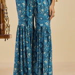 A pop of cobalt, a dash of festive charm, and you're ready to turn heads. This co-ord set brings together tropical-inspired prints and easy-going silhouettes in the most effortless way. Crafted in breathable rayon with multicolour threadwork and zari detailing, it’s the kind of outfit you’ll reach for when you want to look dressed up but feel super comfy.