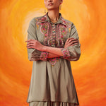 • Kashmiri-inspired resham embroidery placed along the neck, collar and sleeves.