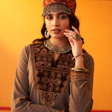 • Its velvet yoke is intricately embroidered, adding a touch of opulence to the set.