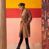 • This long coat for women exudes timeless elegance with its rich and versatile hue, making it a staple for any wardrobe.