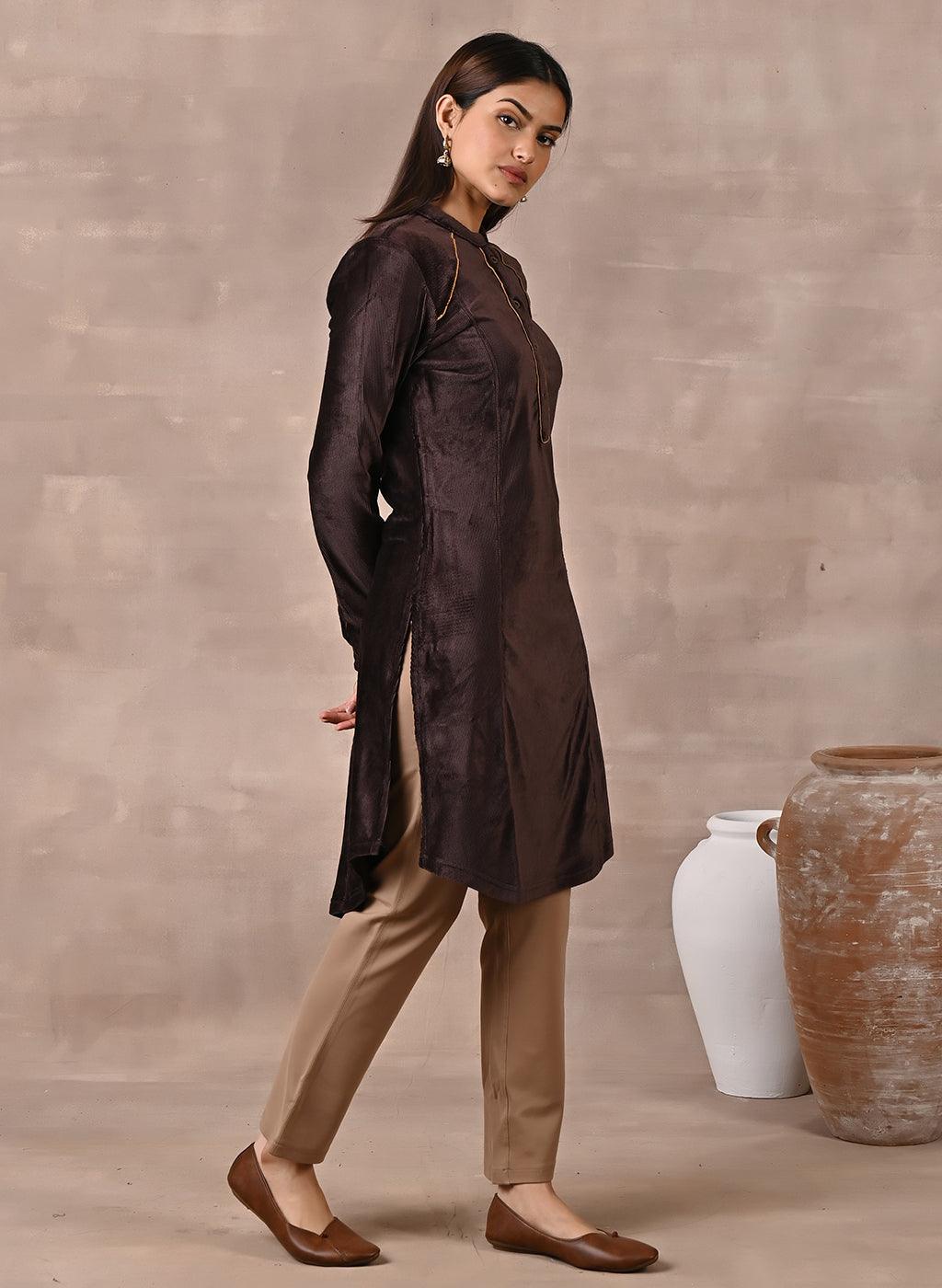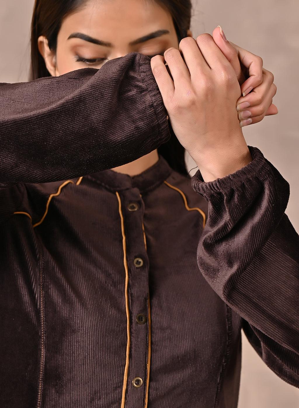 Brown Princess Cut Solid Kurta with Gathered Sleeves - Lakshita
