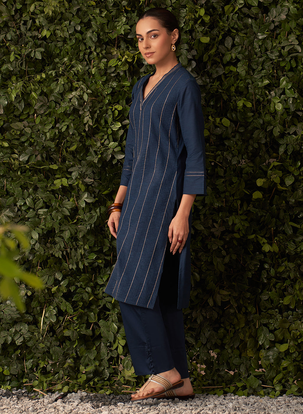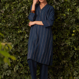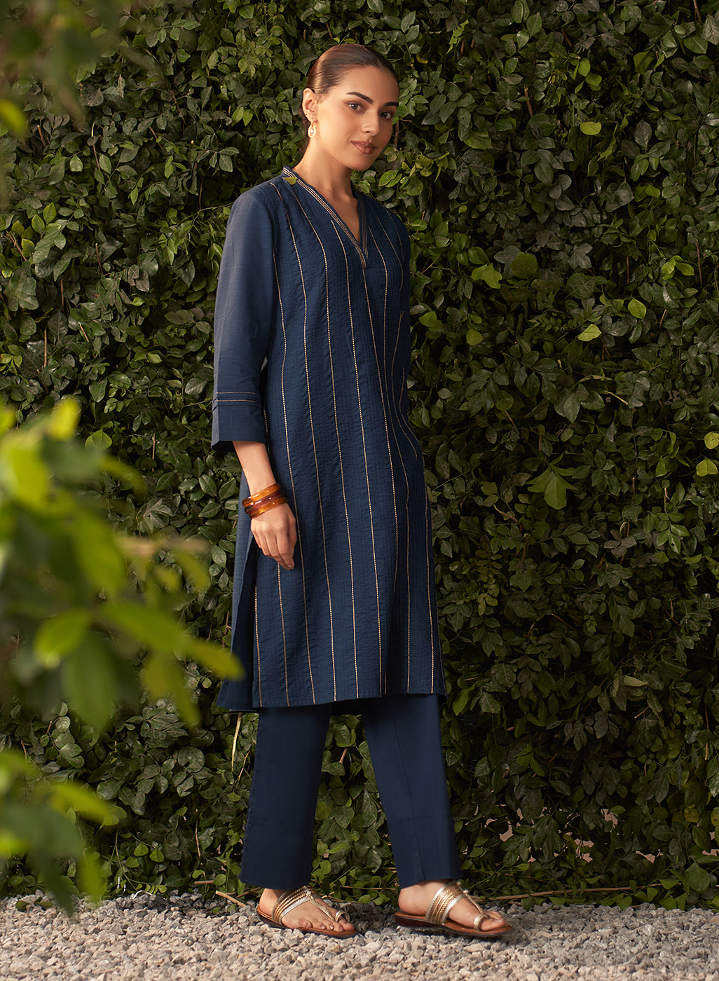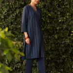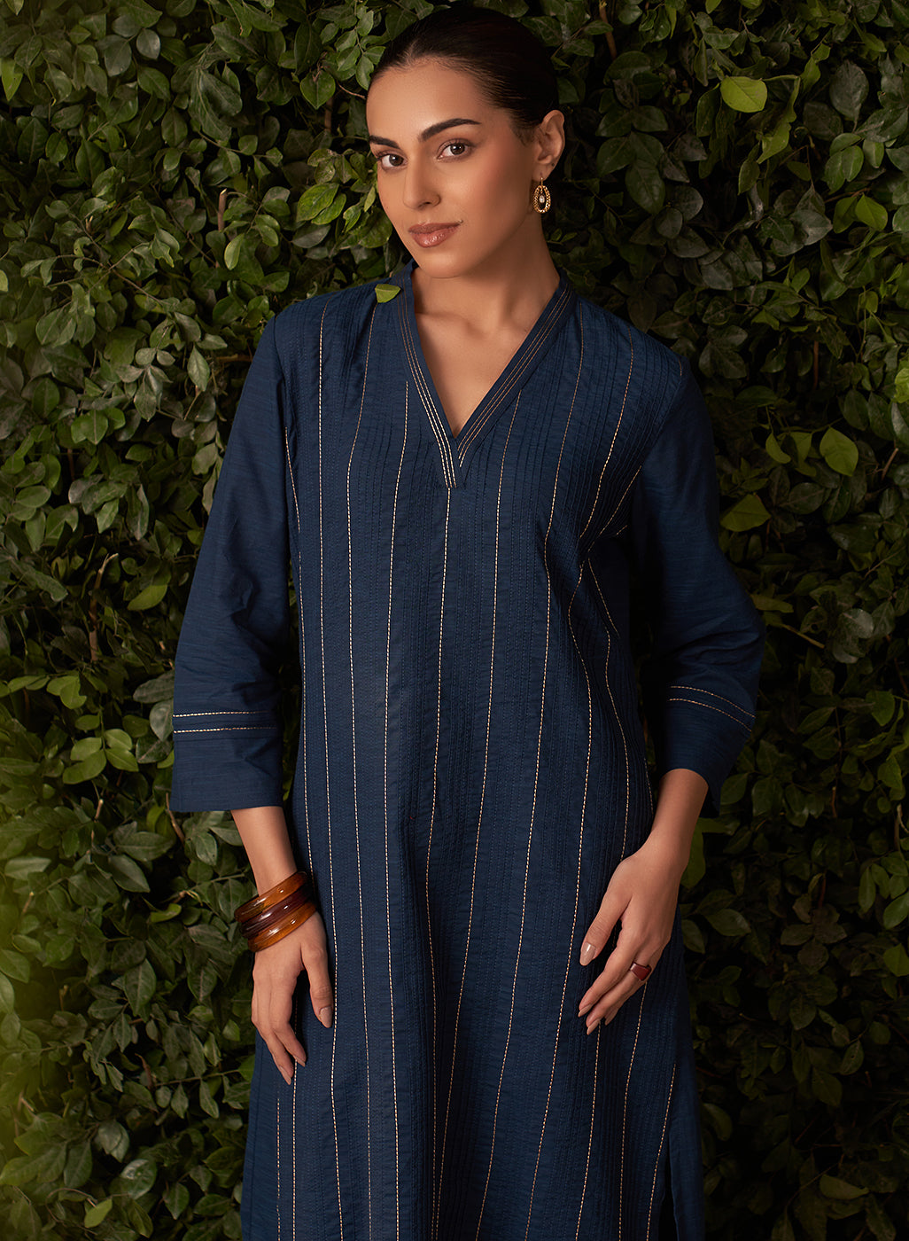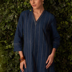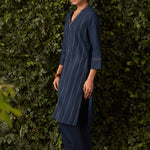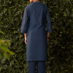 Celine Navy Blue Monochrome Cotton Kurta for Women