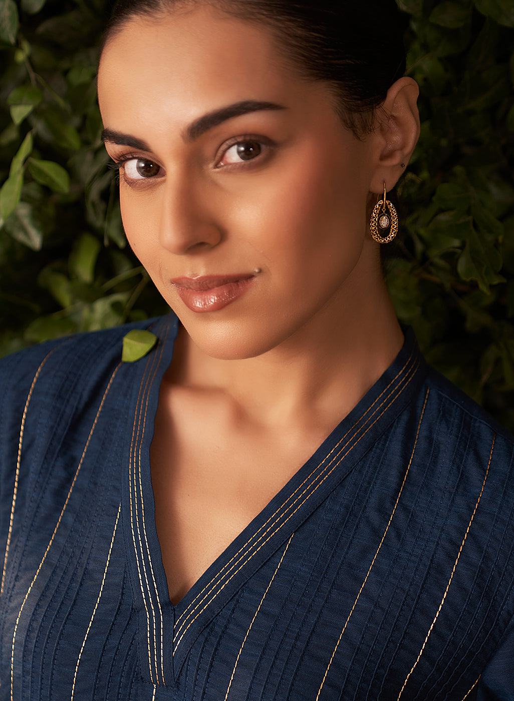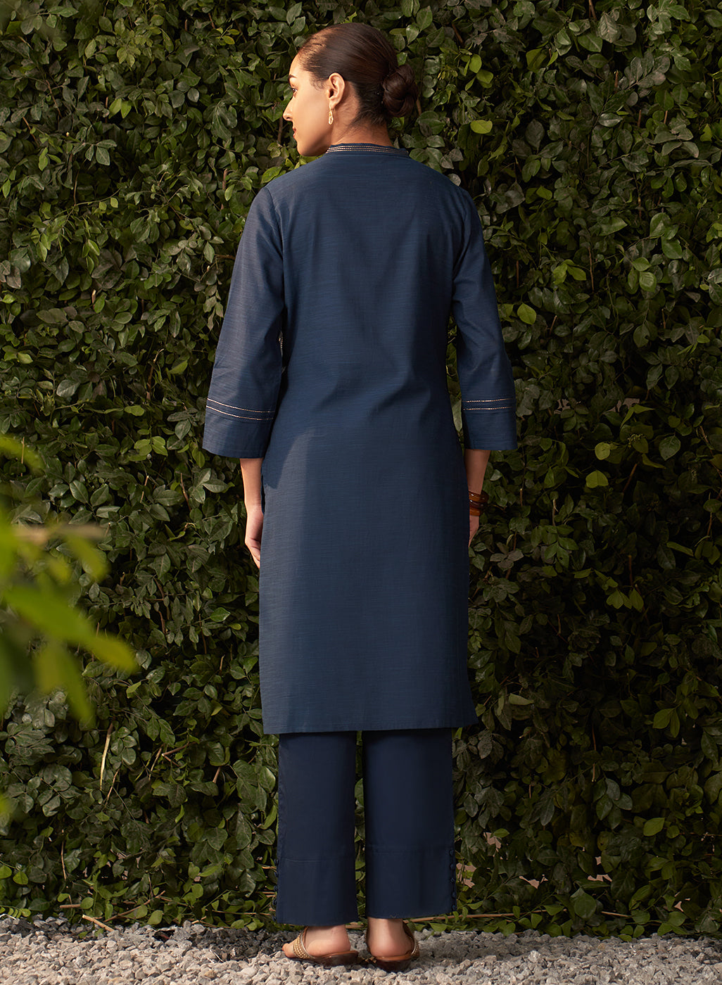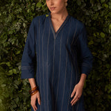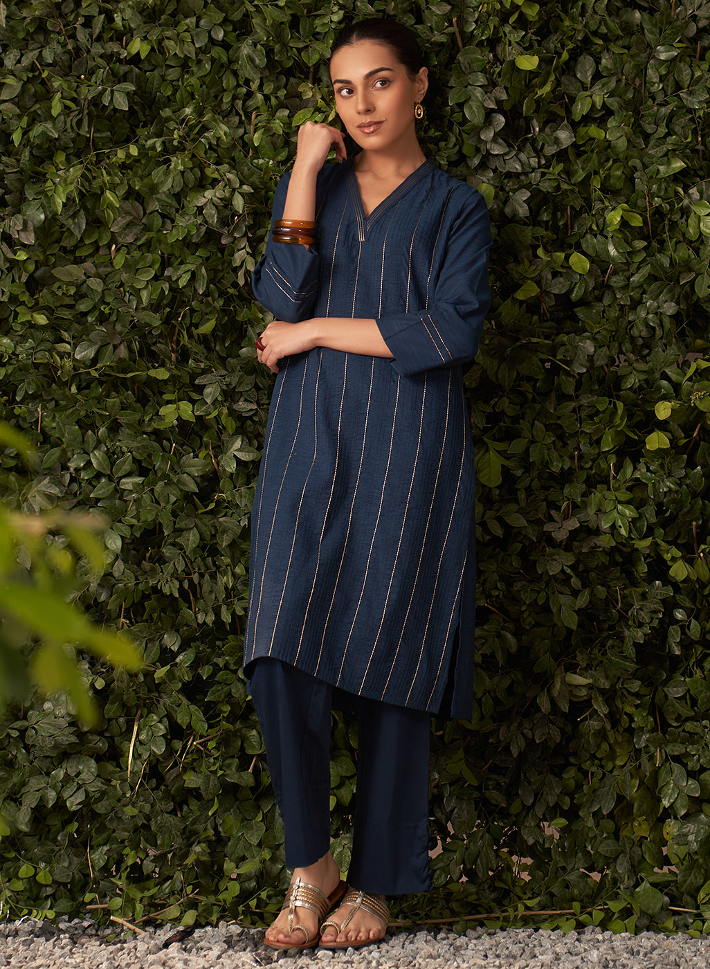 Celine Navy Blue Monochrome Cotton Kurta for Women