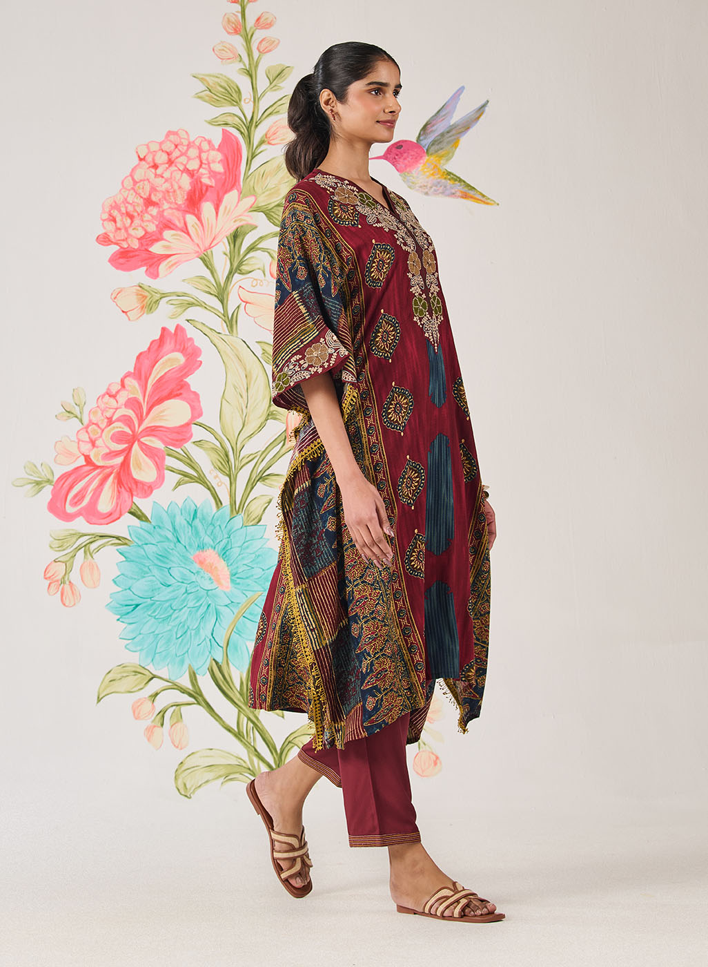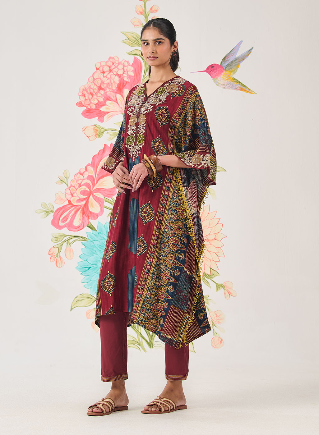 Chhavi Maroon Printed Kaftan Set
