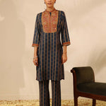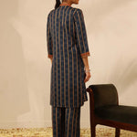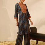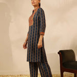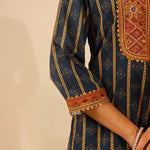 Cobalt Blue Striped Kurta Set with Mirrorwork