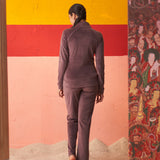 The back of the Dark Purple Velvet Track Suit with Stone Work