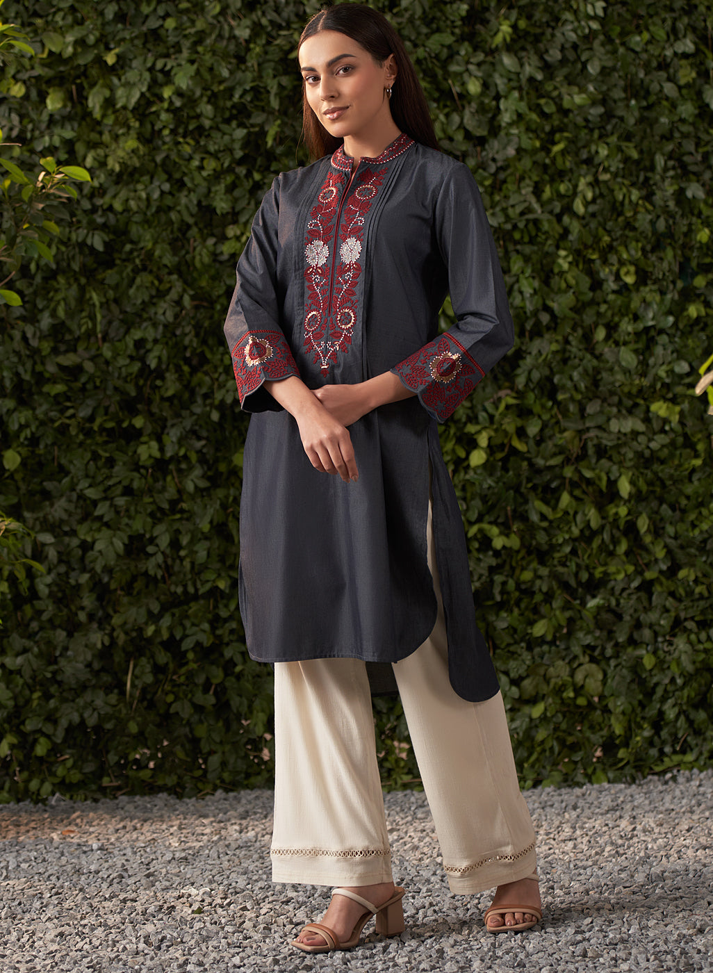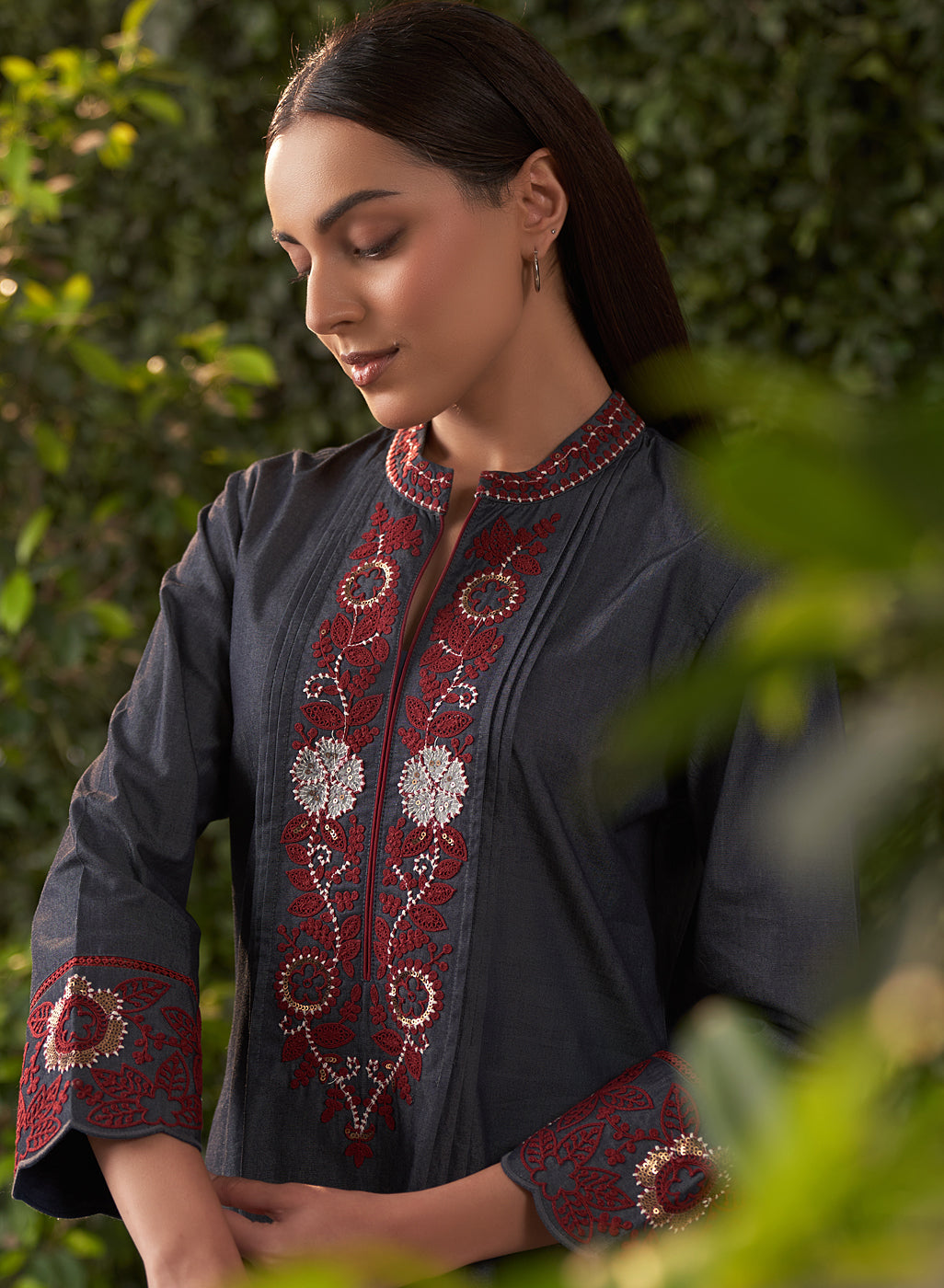 The Dinah Embroidered Designer Kurta for Women is the perfect blend of casual comfort and evening elegance. Made from soft, breathable, and lightweight denim fabric, it provides a relaxed yet stylish fit for your evening gatherings.