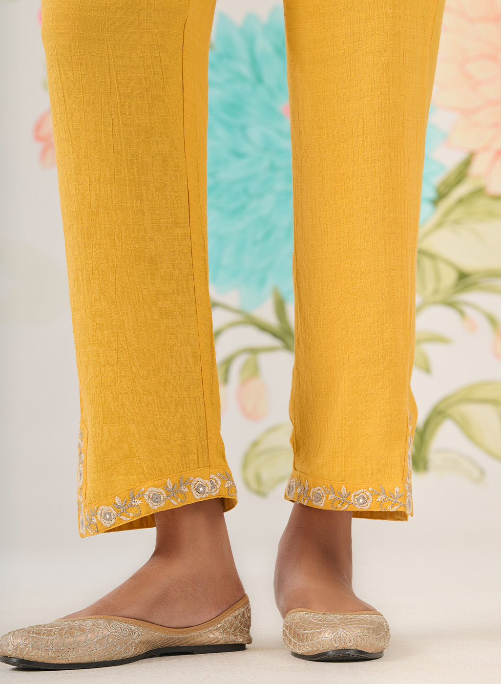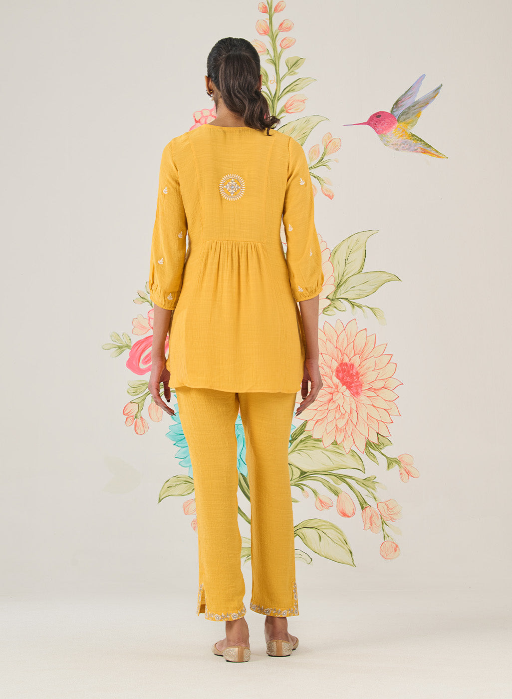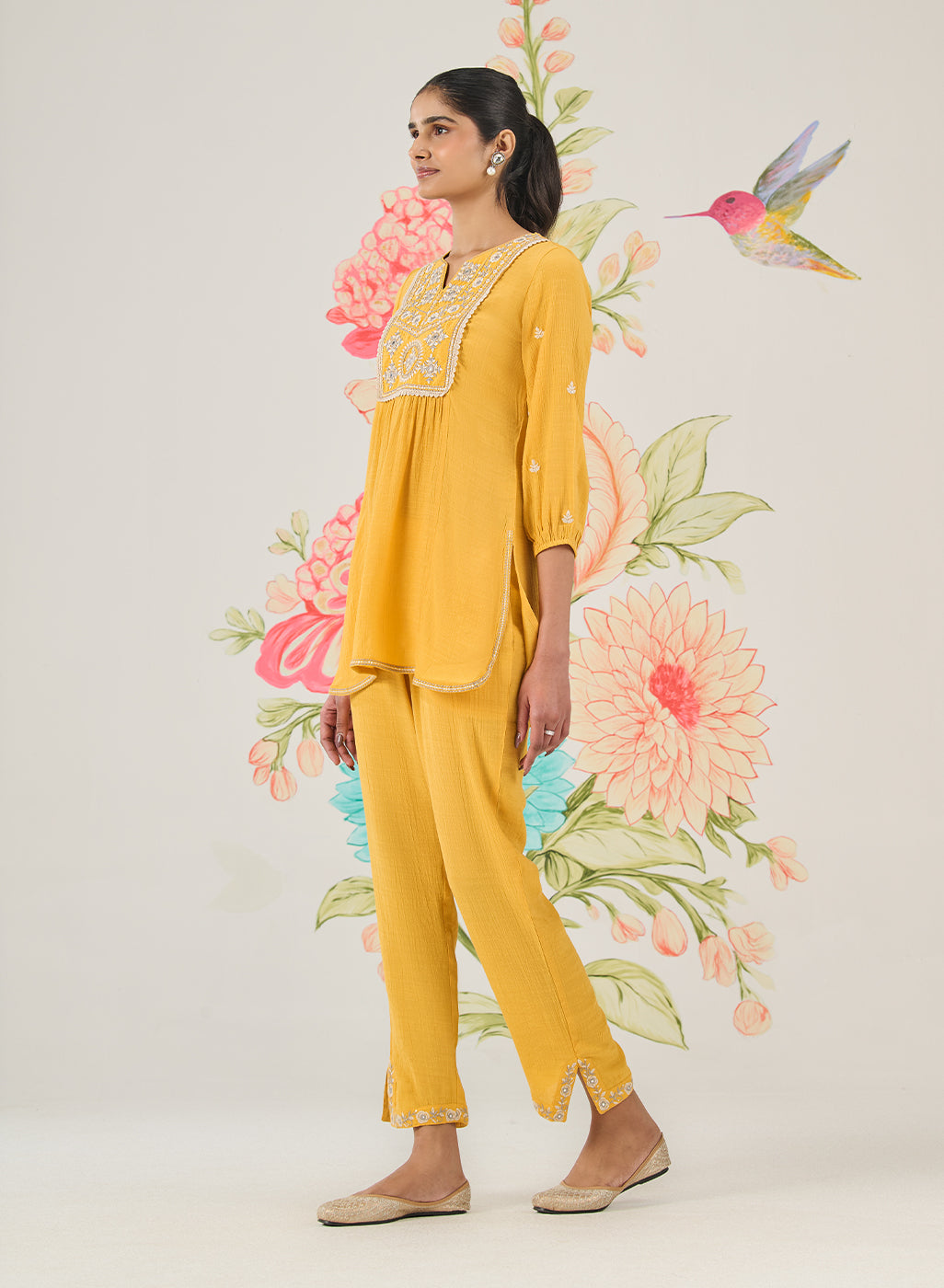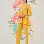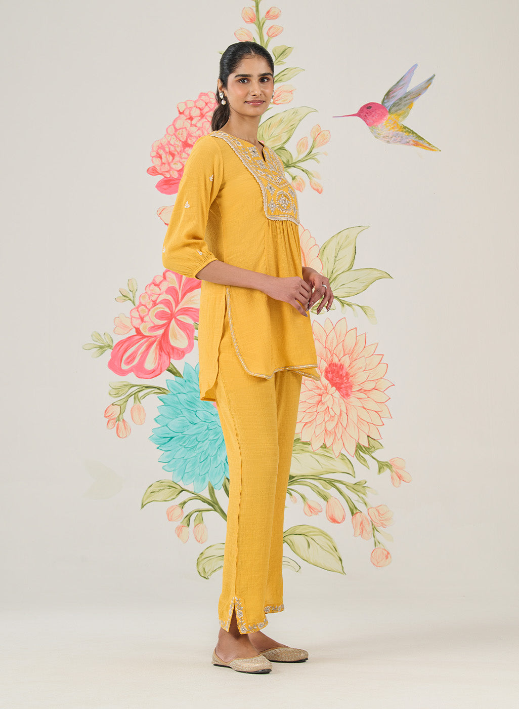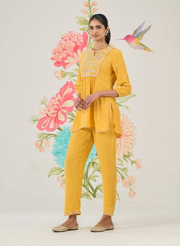 This yellow co-ord set brings together comfort and intricate detailing, making it a cheerful pick for summer days. Light on the skin and easy to wear, it’s designed to keep you feeling relaxed yet put together.