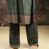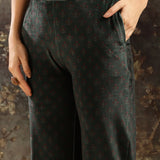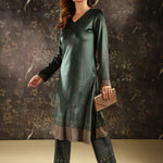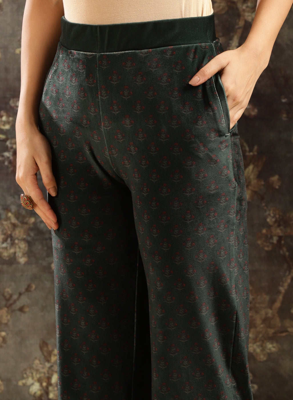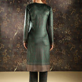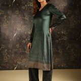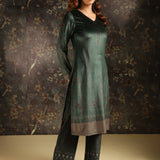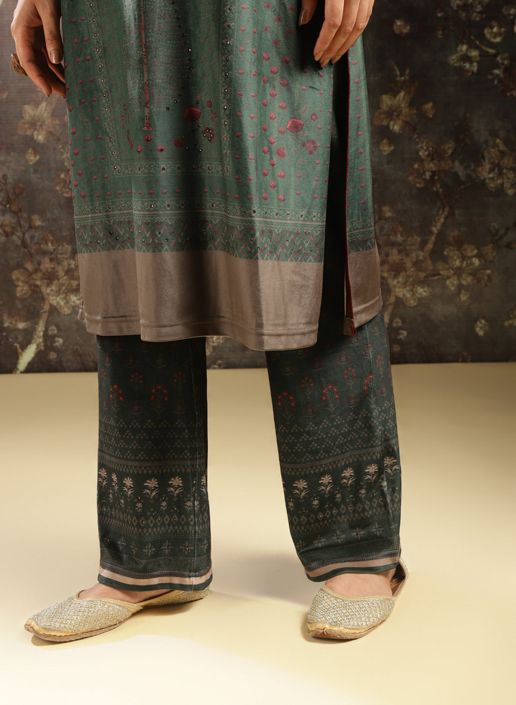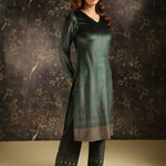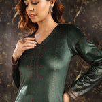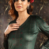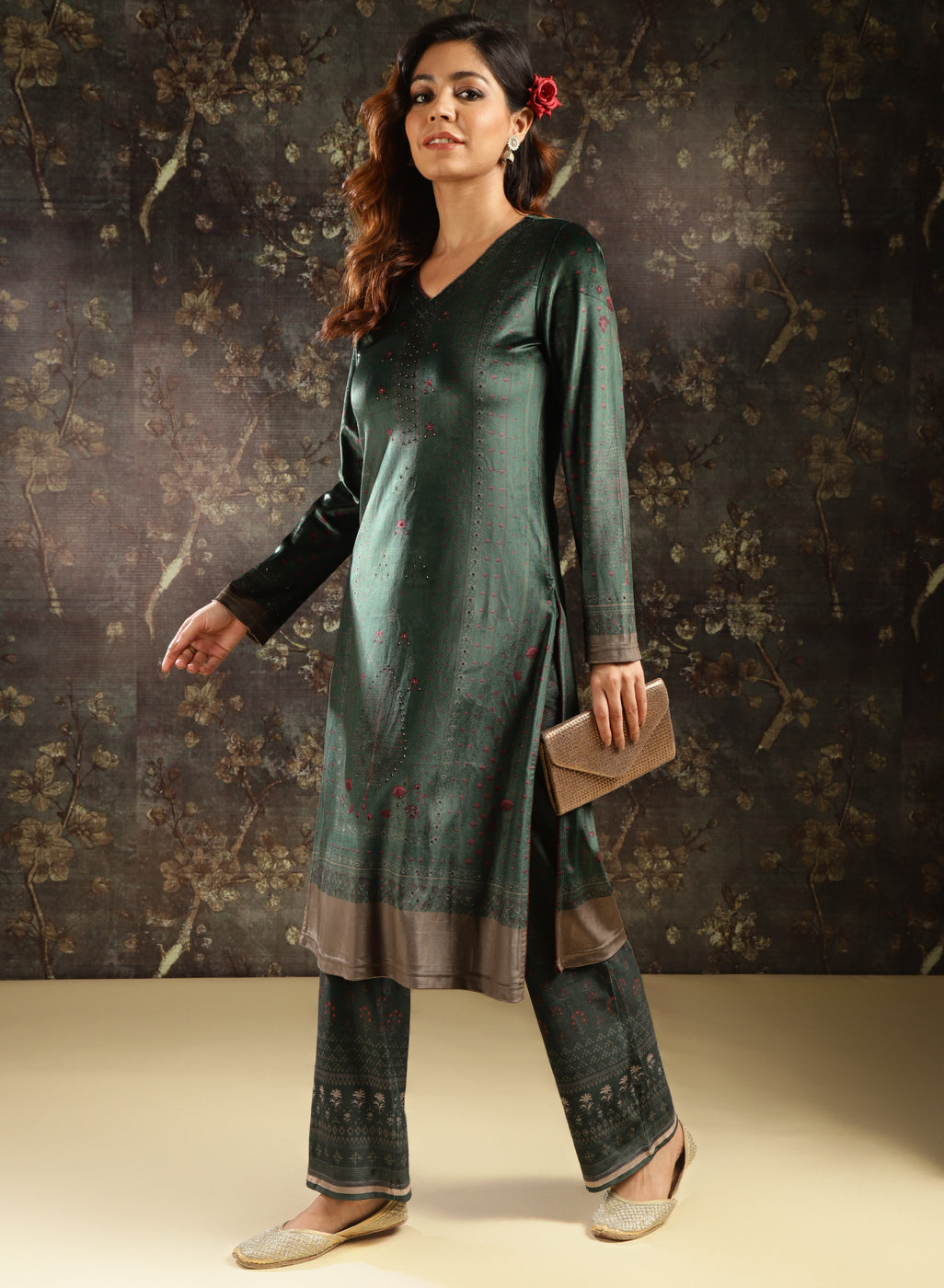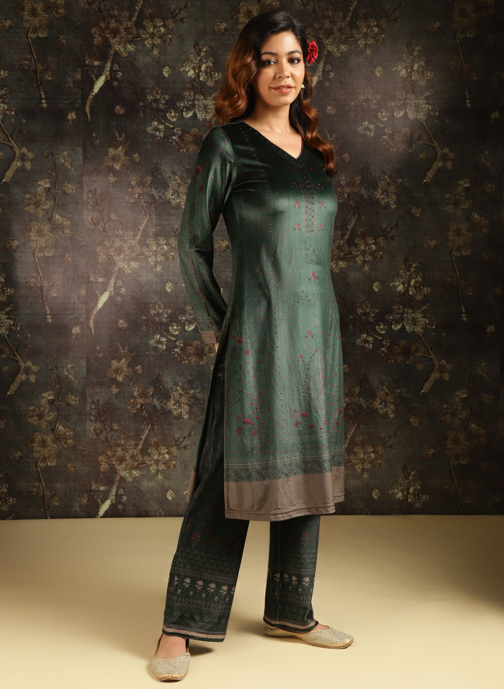 Emerald Green Printed Velvet Kurta Set with Swarovski Work