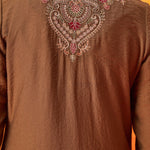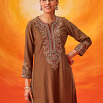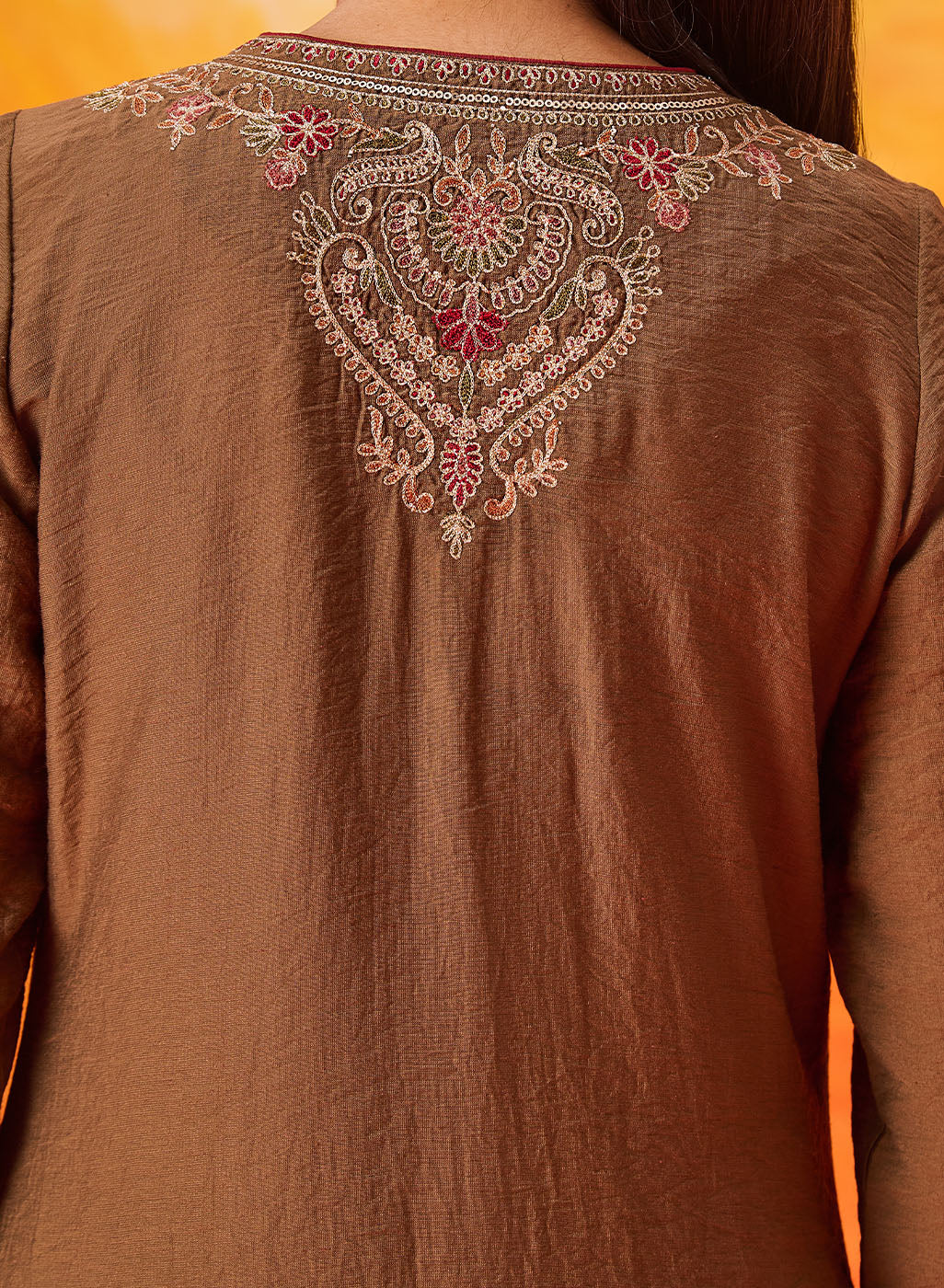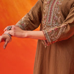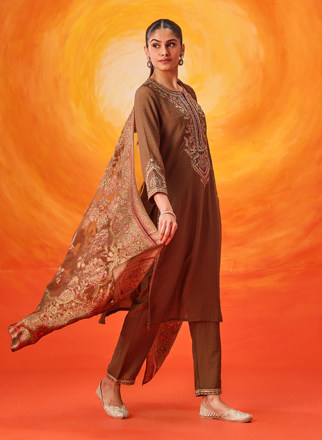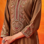 Eshira Brown Zari Embroidered Suit Set with Dupatta