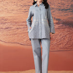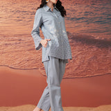 Make your evenings all about sheer comfort and elegance with our Eva Embroidered Cotton Poplin Co-ord Set. Handcrafted from soft, breathable, and lightweight fabric, this set is all about comfort and style.