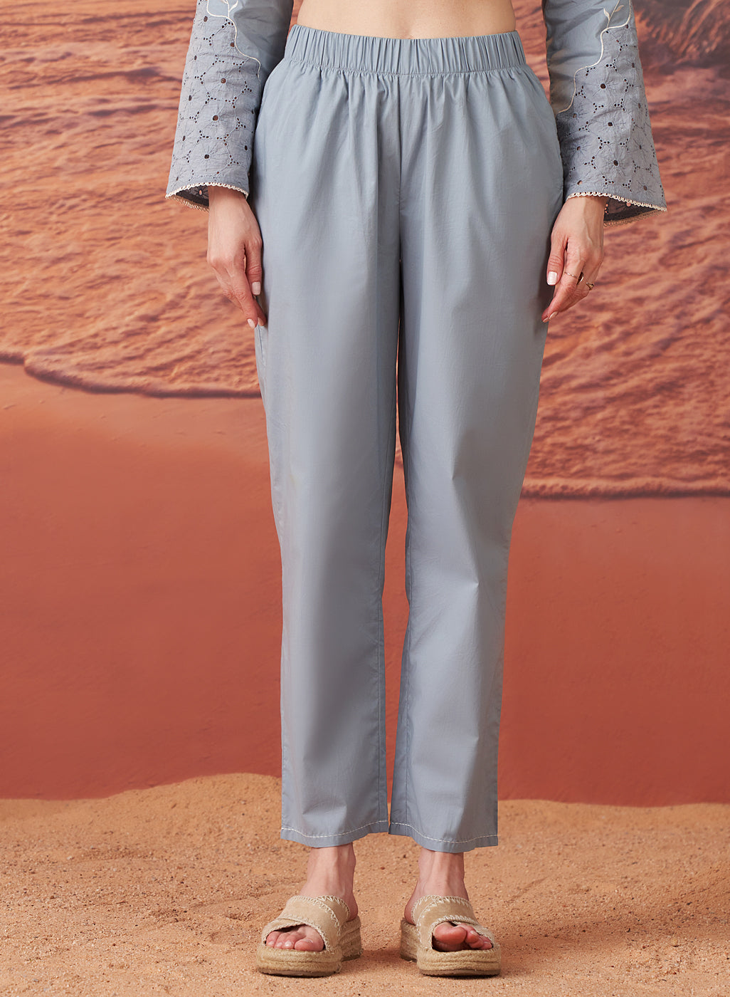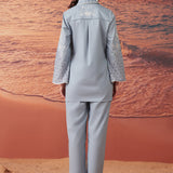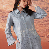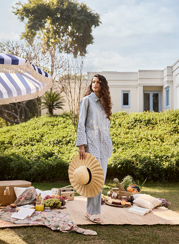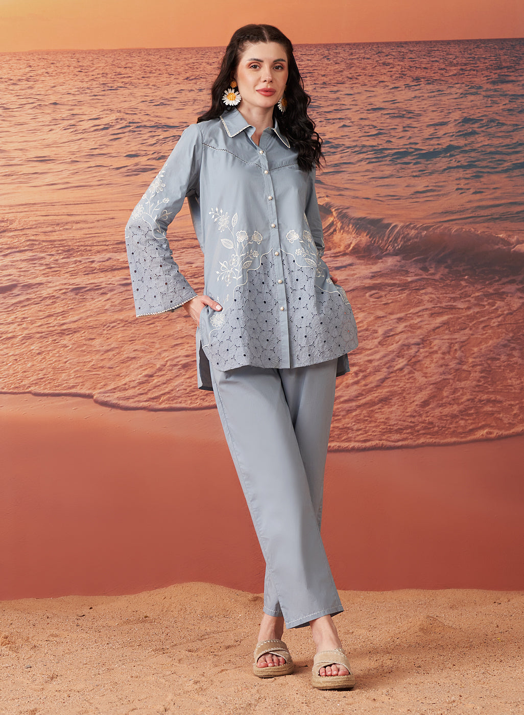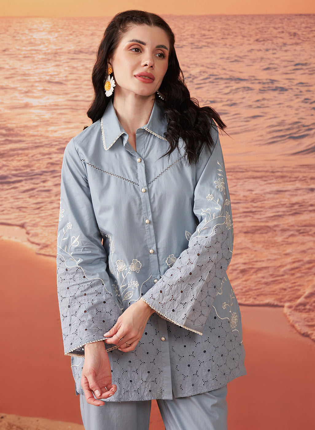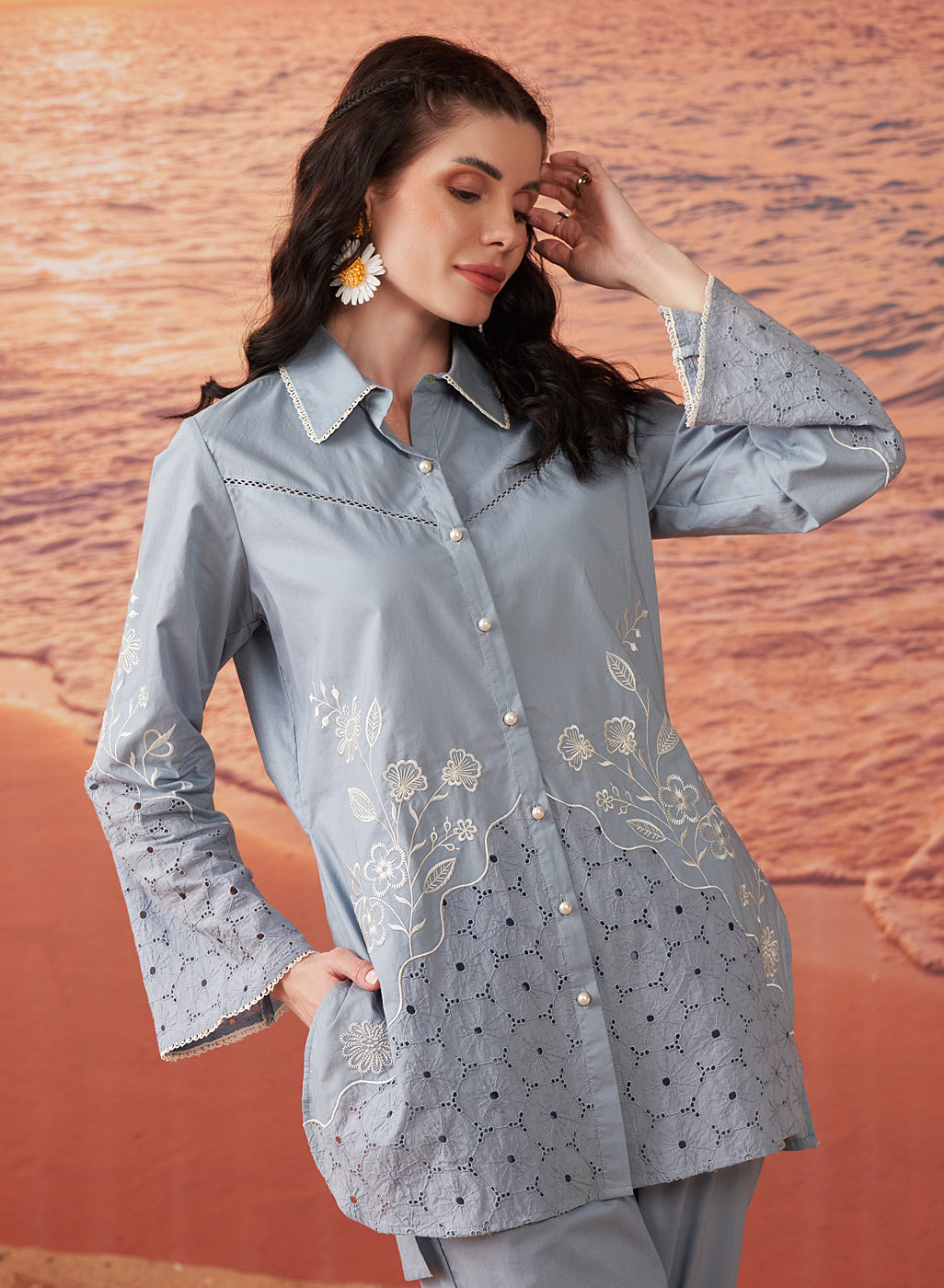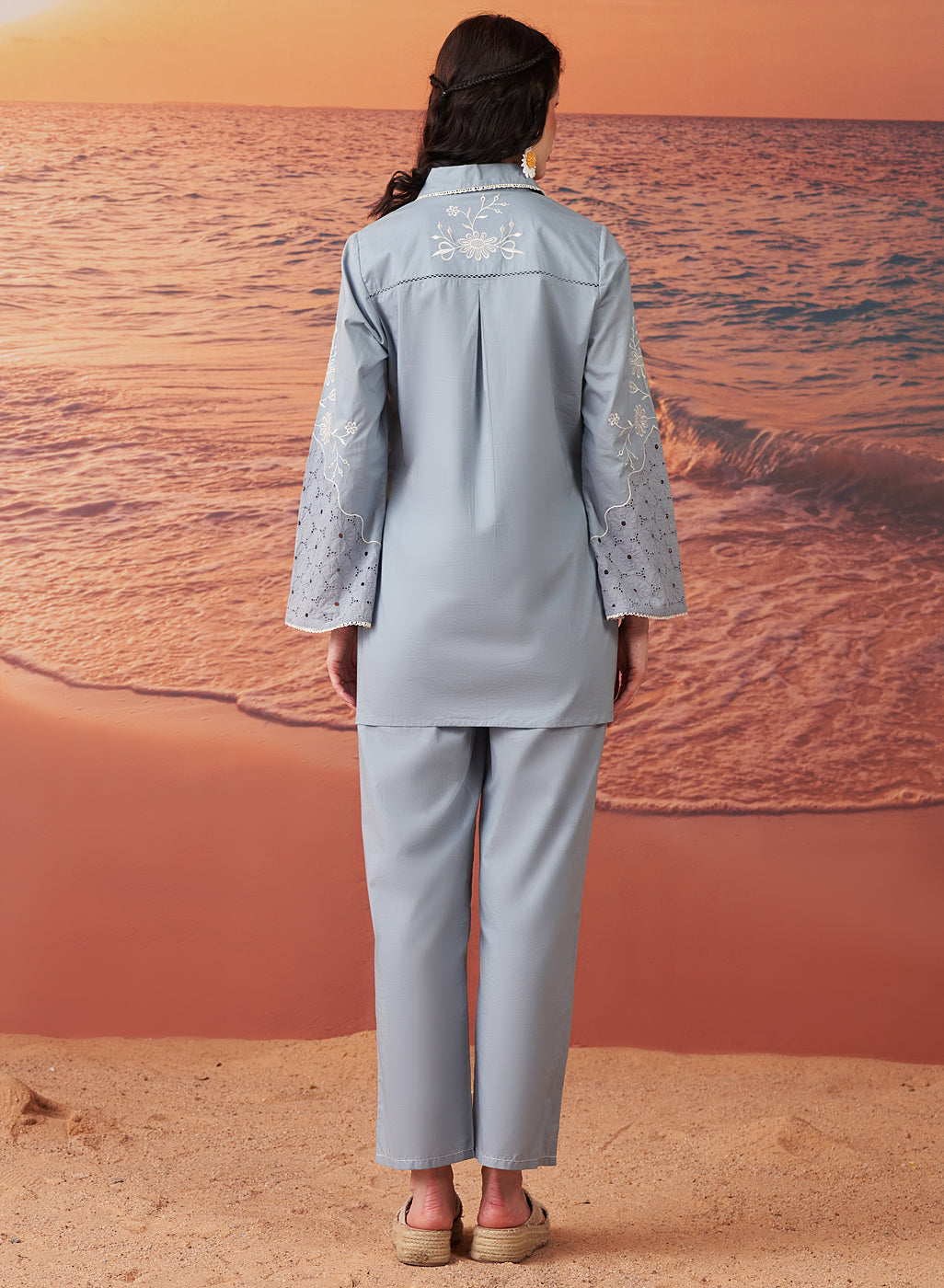 Eva Blue Mist Embroidered Cotton Poplin Co-ord Set