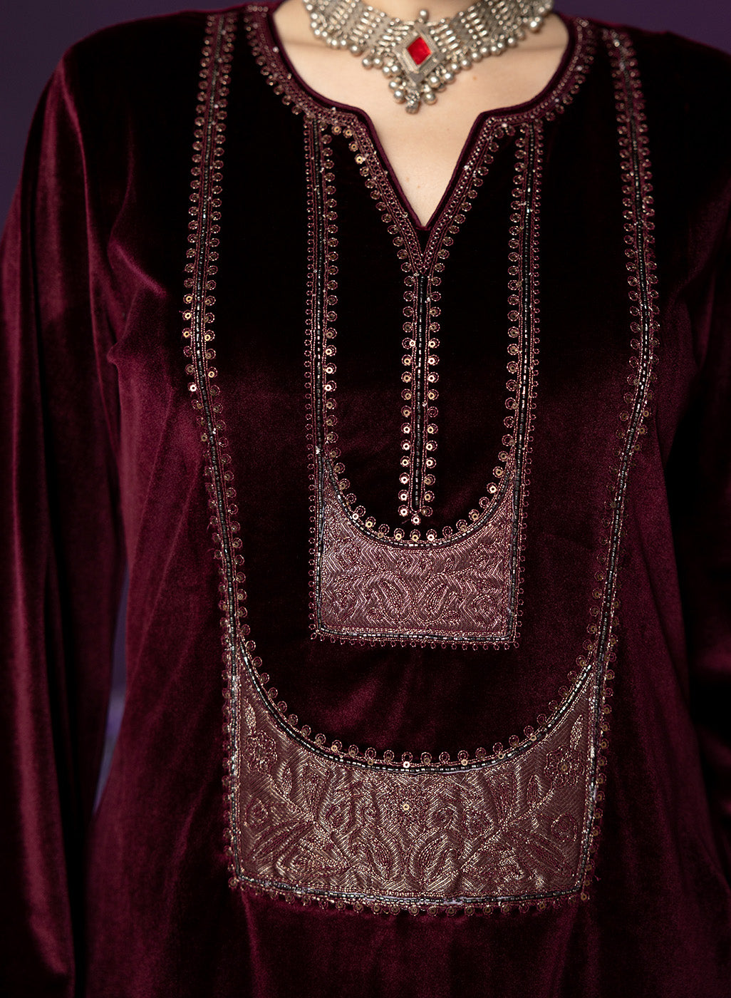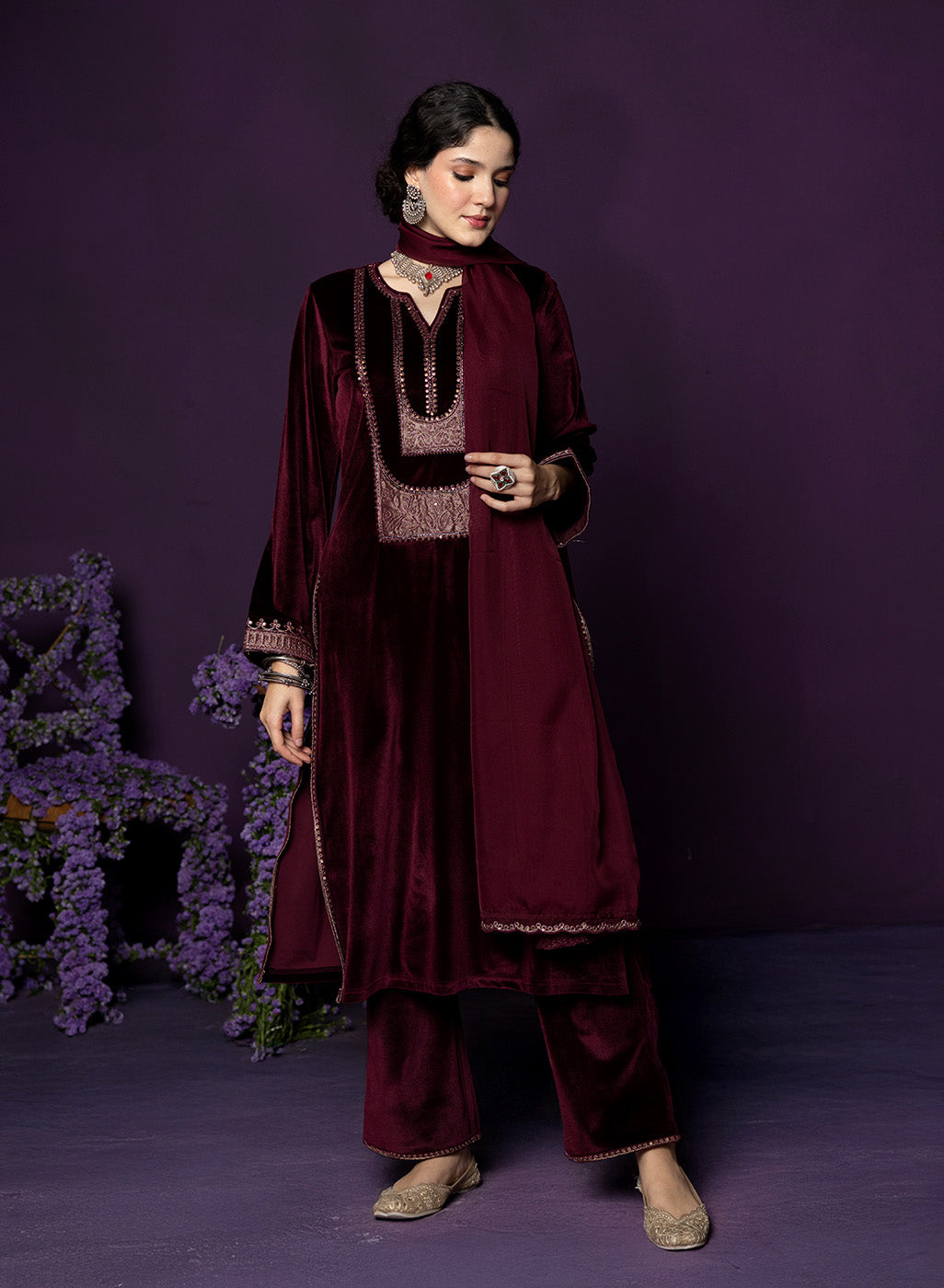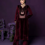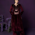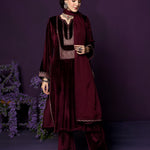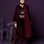 Fareen Maroon Embroidered Velvet Suit Set with Dupatta