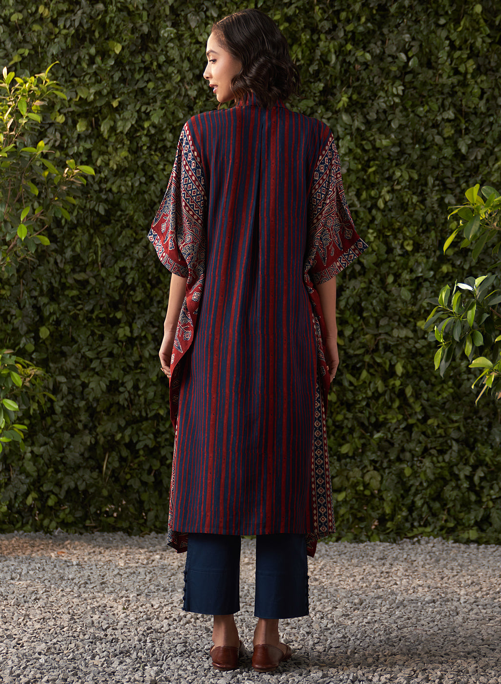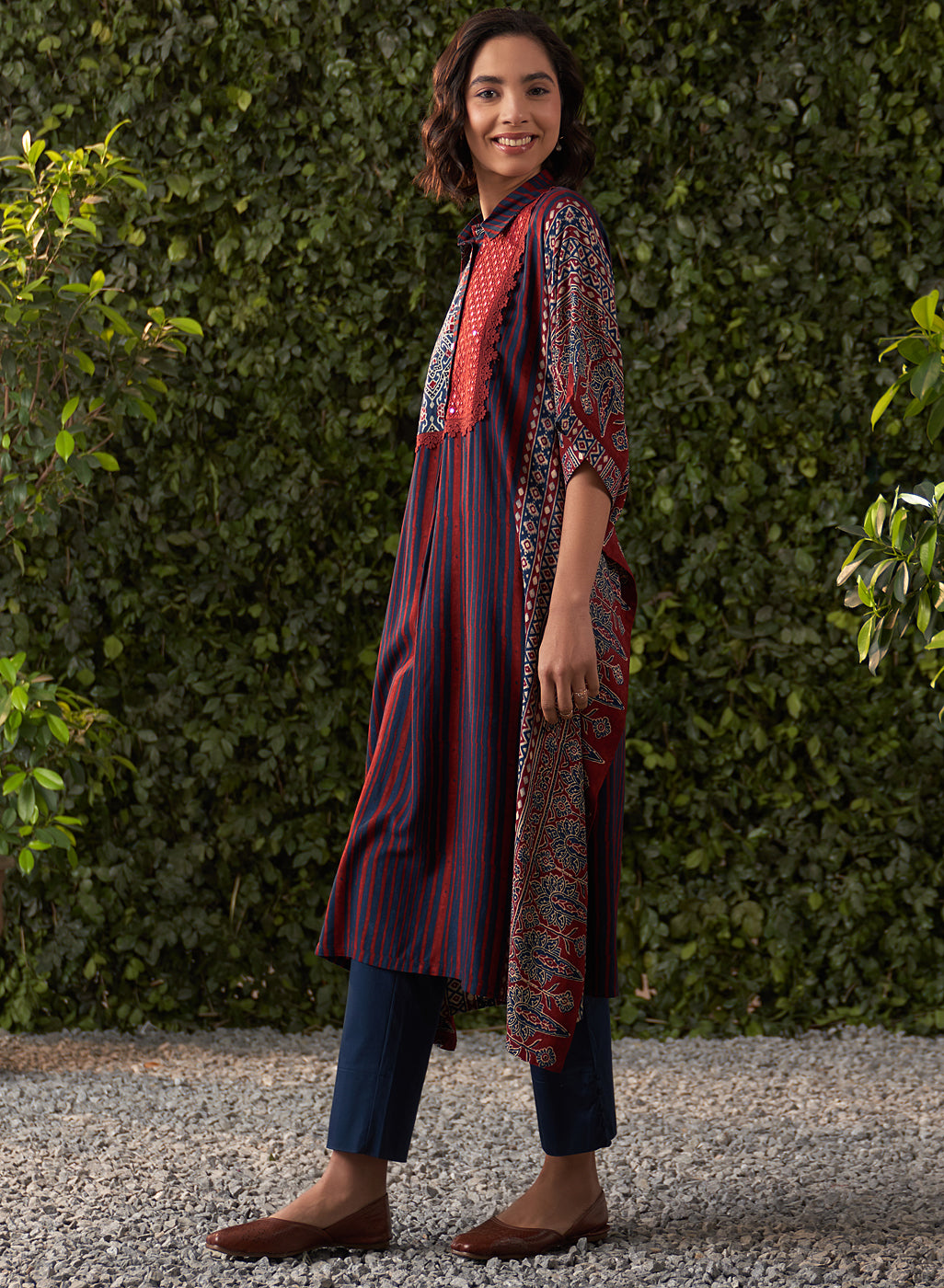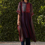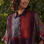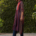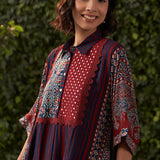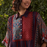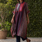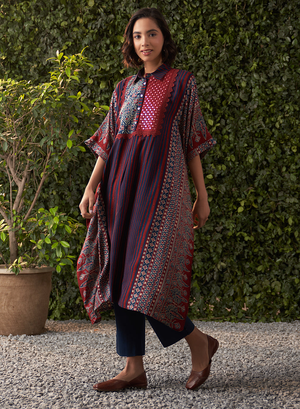 This Fiona Kaftan dress is a striking fusion of traditional craftsmanship and contemporary flair. Crafted from a soft, breathable rayon, it flows gracefully, embracing you in a loose, relaxed fit that offers unmatched comfort. The rich hue of deep red creates a dramatic canvas, enhanced by the all-over printed Ajrakh pattern.