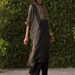•The soft shell buttons down the front add a natural, organic element, perfectly complementing the garment’s earthy vibe.