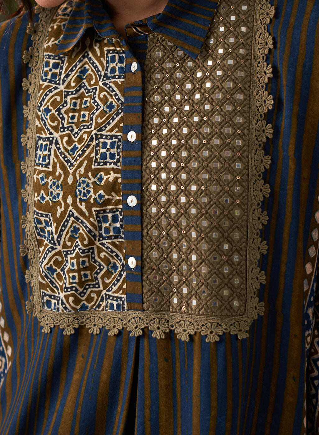 •The neckline is a masterpiece, adorned with delicate mirror work in a subtle, captivating way.