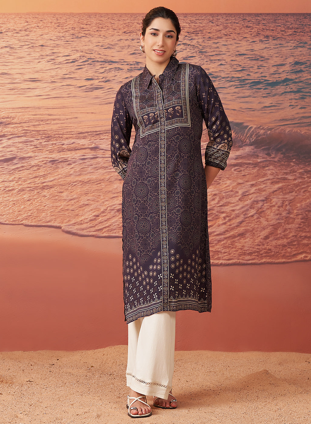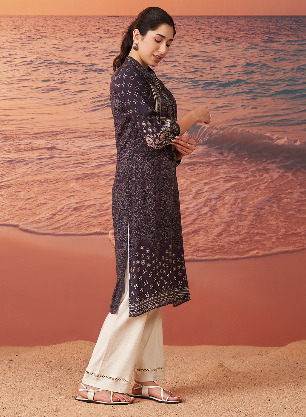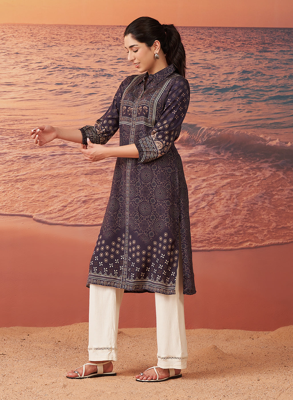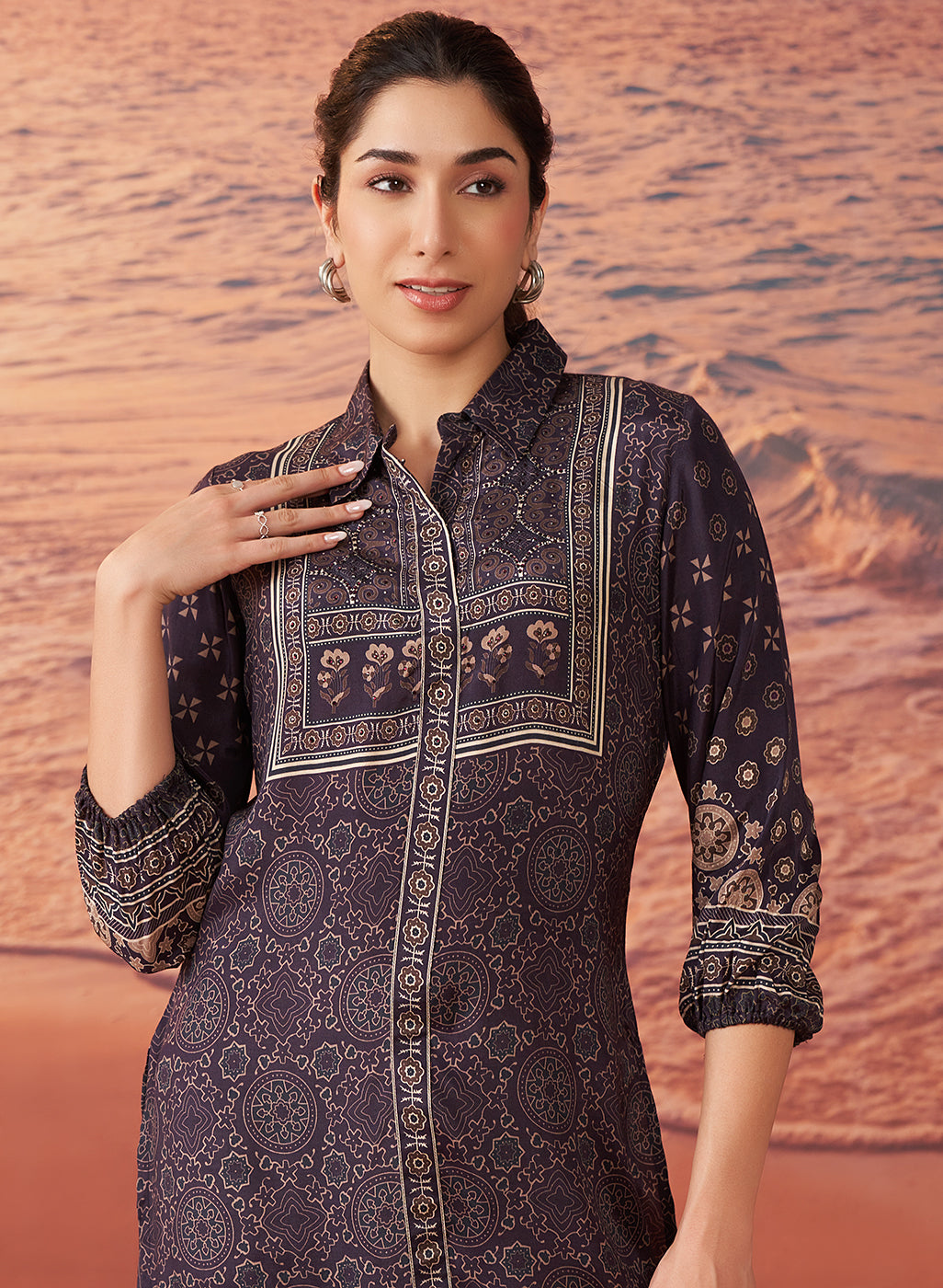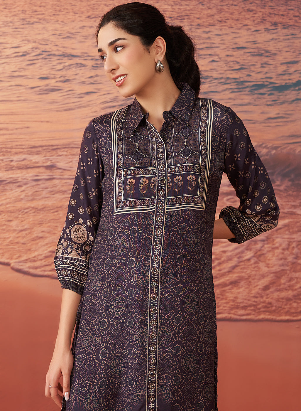 •The kurta features balloon sleeves that gather at the cuffs, creating a soft, flowing silhouette that is flattering and breathable.