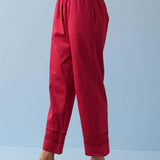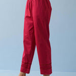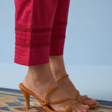 Fuchsia Straight Fit Pants with Decorative Lace Work - Lakshita