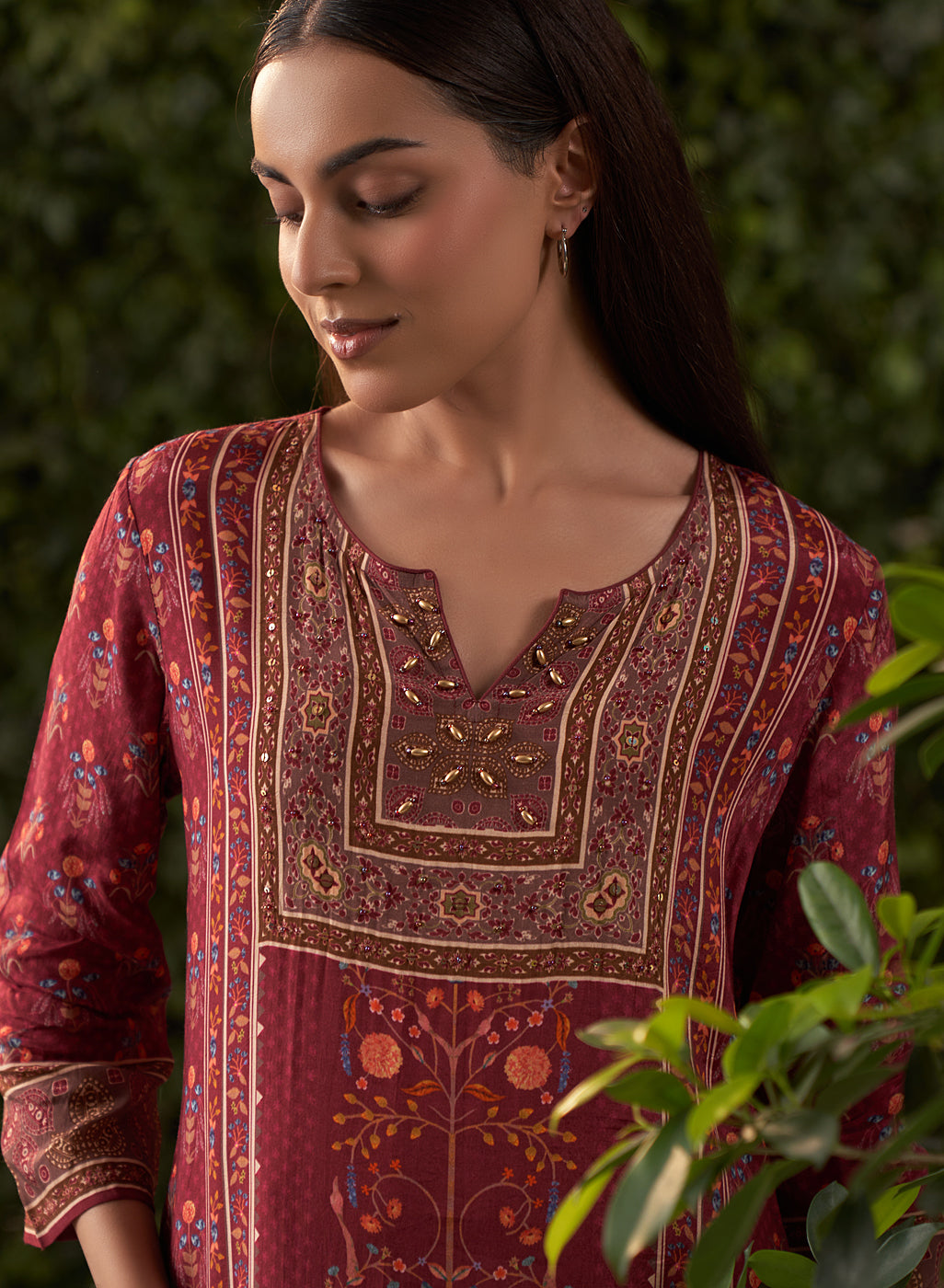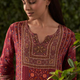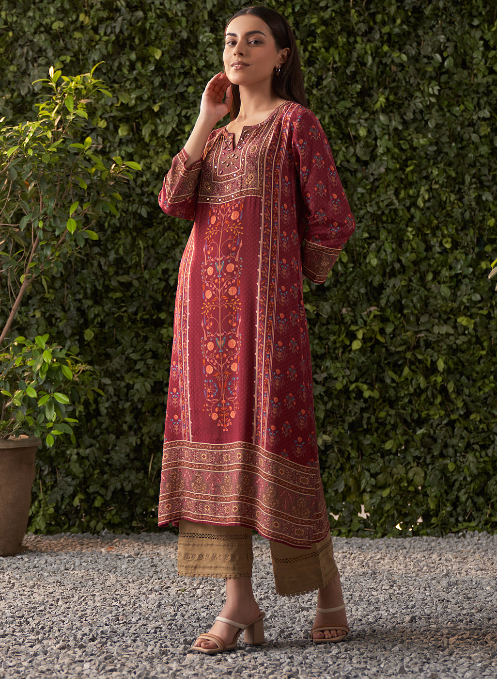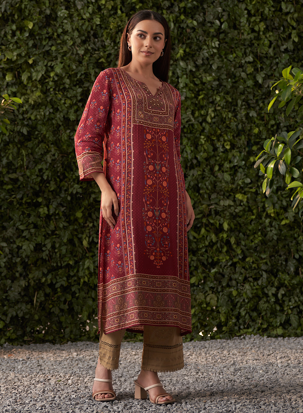Add our Gloria Printed Shantoon Kurta for Women to your everyday wardrobe for utmost comfort and style. Crafted from a soft and breathable fabric with a sheen, it showcases a Mughal-floral-inspired print.