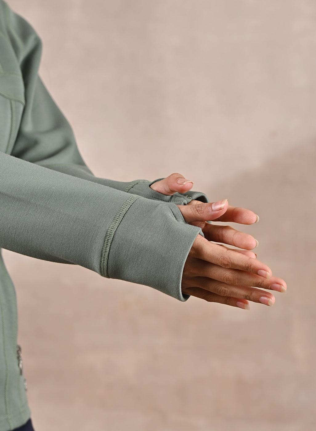 Green Long-sleeve Jacket with Decorative Cuts - Lakshita
