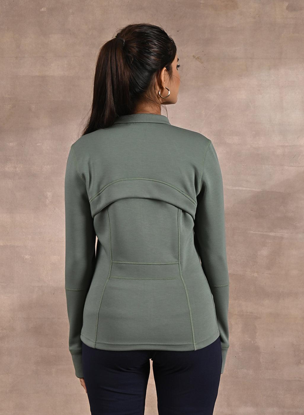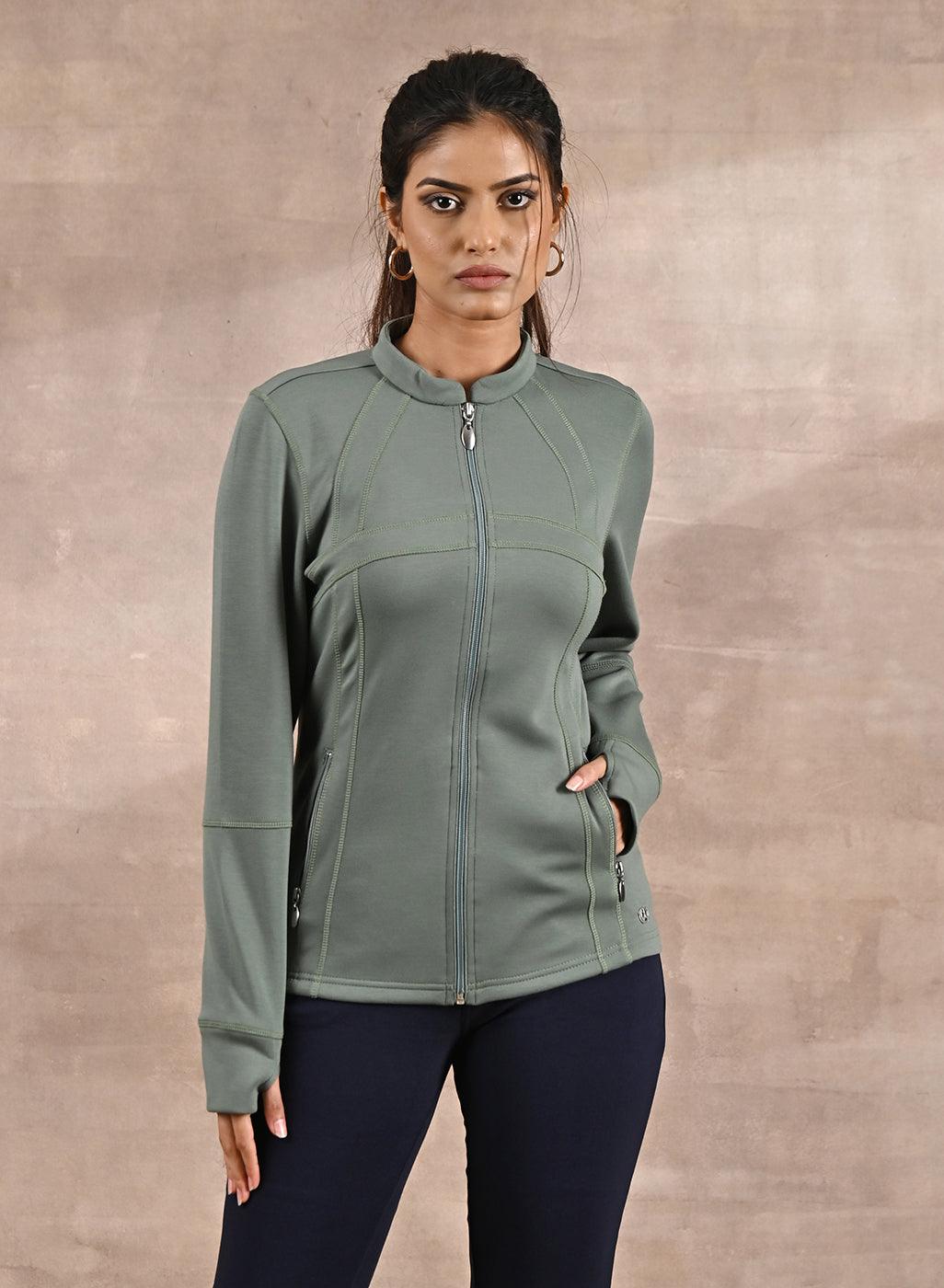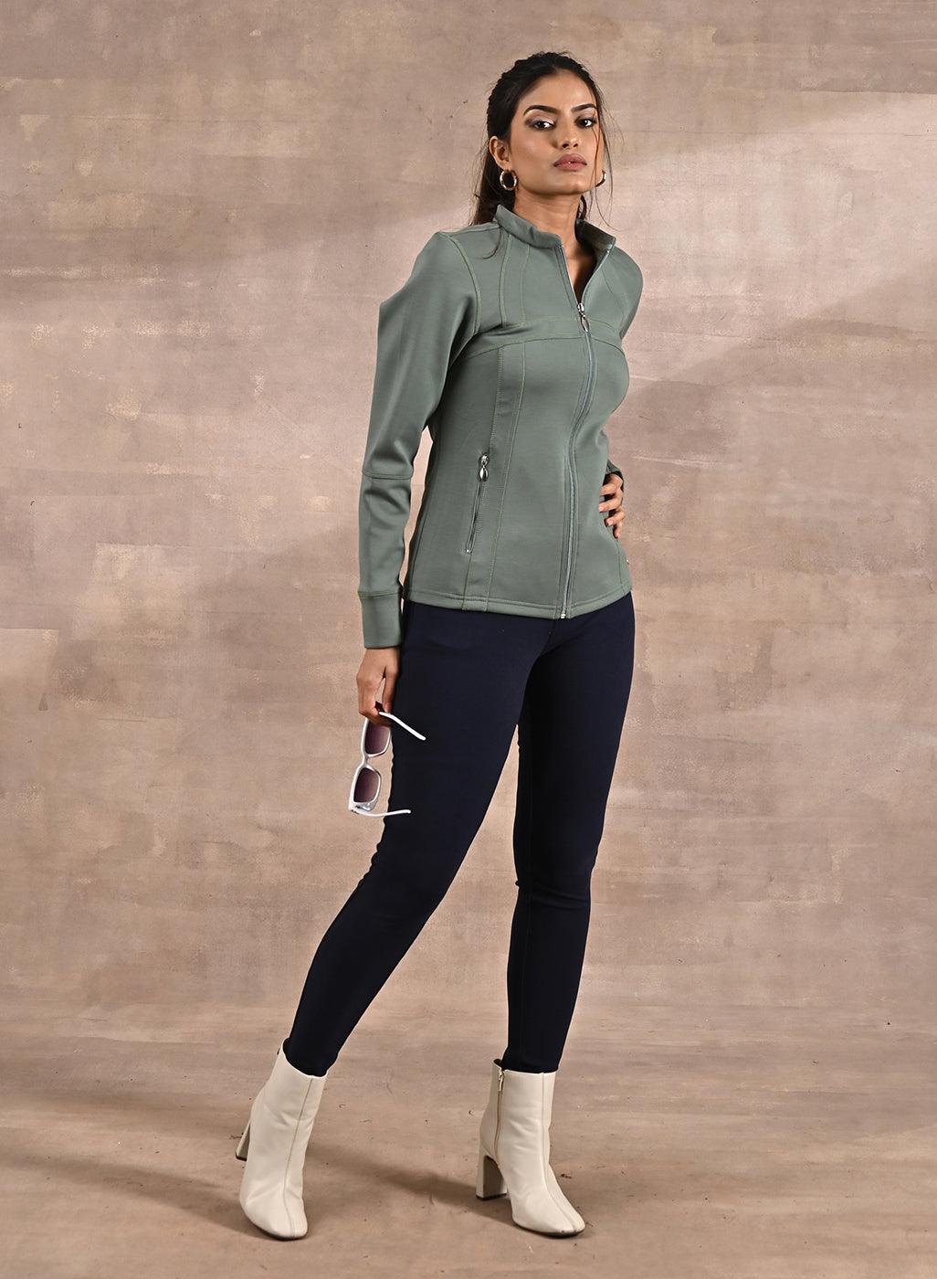 This green-coloured regular-fit jacket with extra long sleeves is the best pick for days when the goal is to look glamorous without compromising on comfort. The mandarin collar along with zip closure at the front and the pockets are what make the jacket look one-of-a-kind. No matter what the occasion is, this jacket will make you look polished and chic.