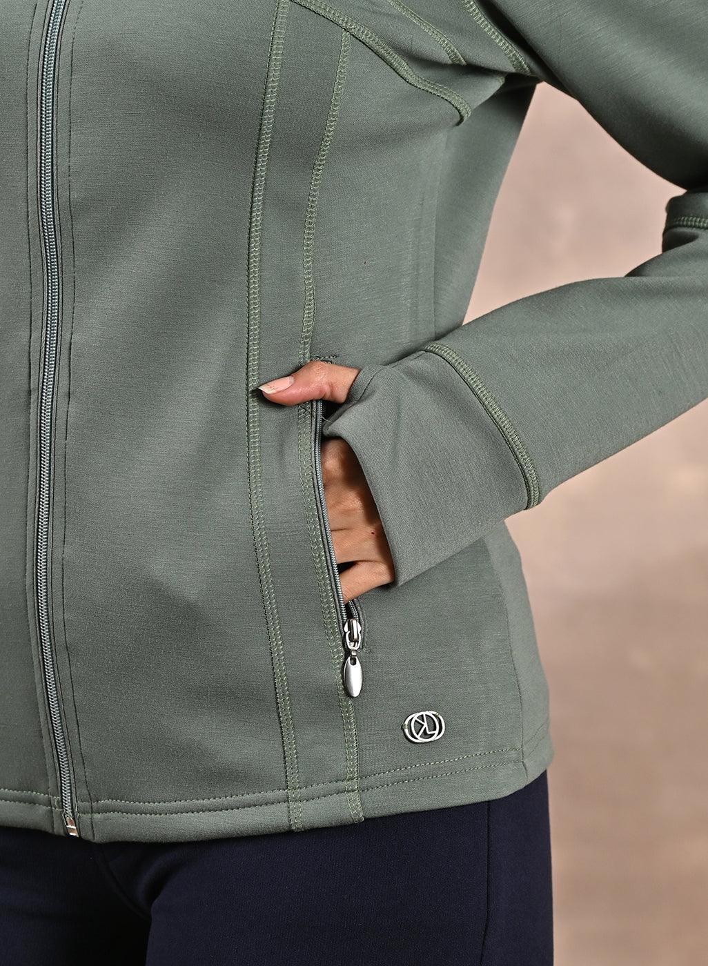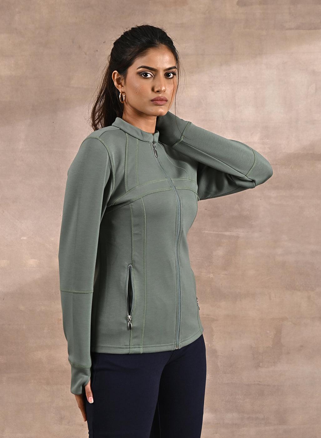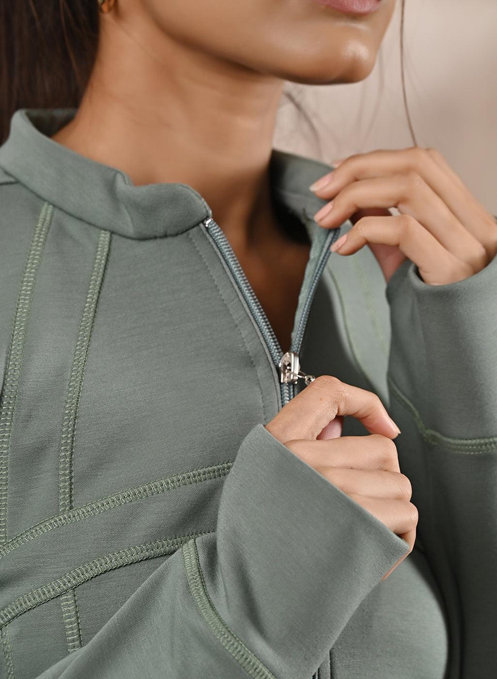 This green-coloured regular-fit jacket with extra long sleeves is the best pick for days when the goal is to look glamorous without compromising on comfort. The mandarin collar along with zip closure at the front and the pockets are what make the jacket look one-of-a-kind. No matter what the occasion is, this jacket will make you look polished and chic.