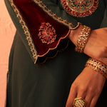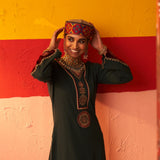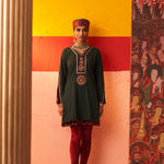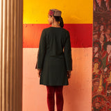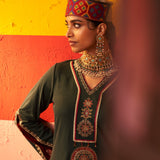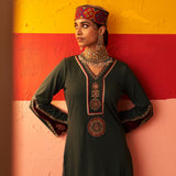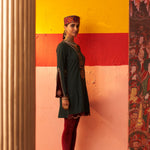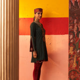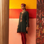 Green Women Woollen Kurti with Inserts and Zari Work