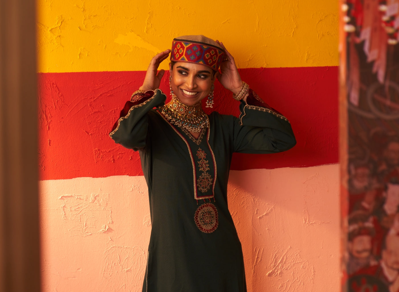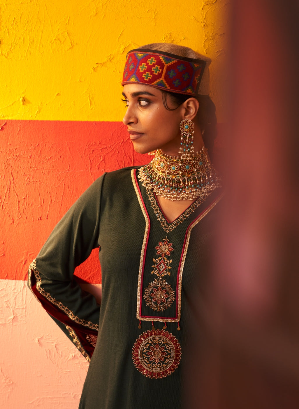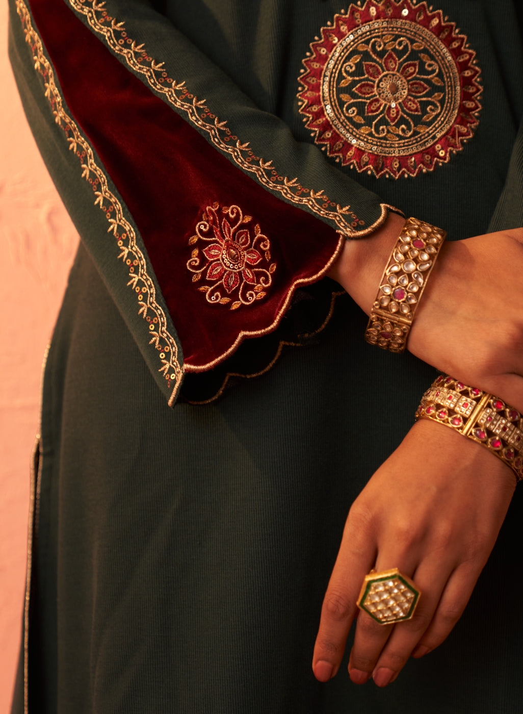 • The mesmerising zari work, velvet inserts, and the gota lace- everything contributes towards its allure.